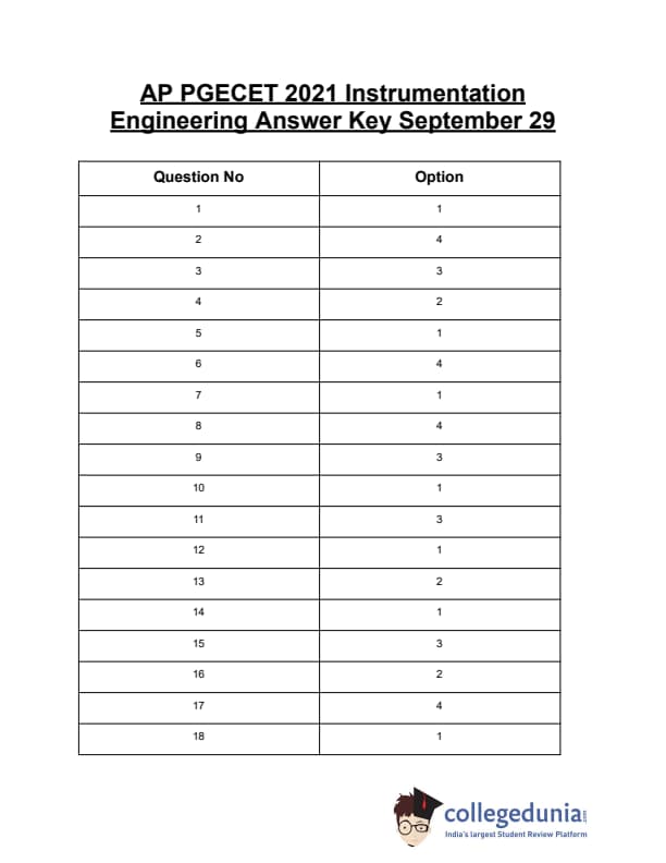 | AP PGECET 2021 Instrumentation Engineering Question Paper | AP PGECET 2021 Instrumentation Engineering Answer Key |