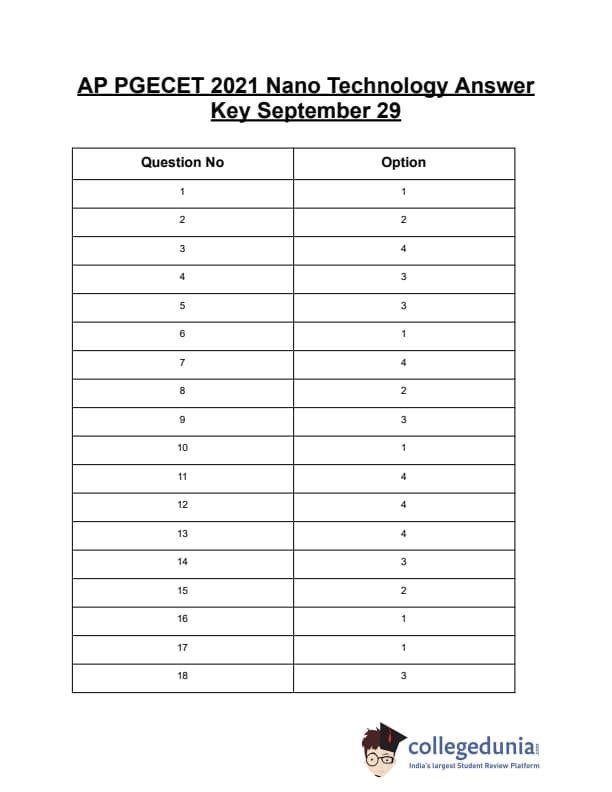 | AP PGECET 2021 Nano Technology Question Paper | AP PGECET 2021 Nano Technology Answer Key |