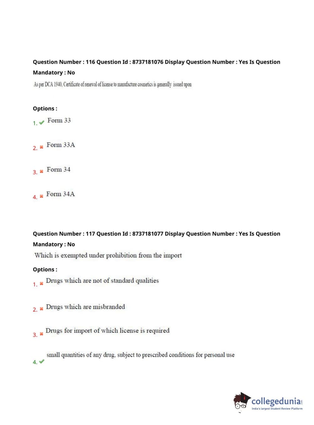 AP PGECET 2021 Pharmacy Question Paper with Answer Key PDF for Forenoon Session