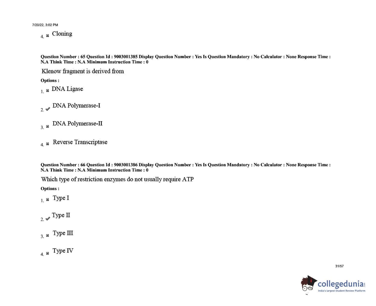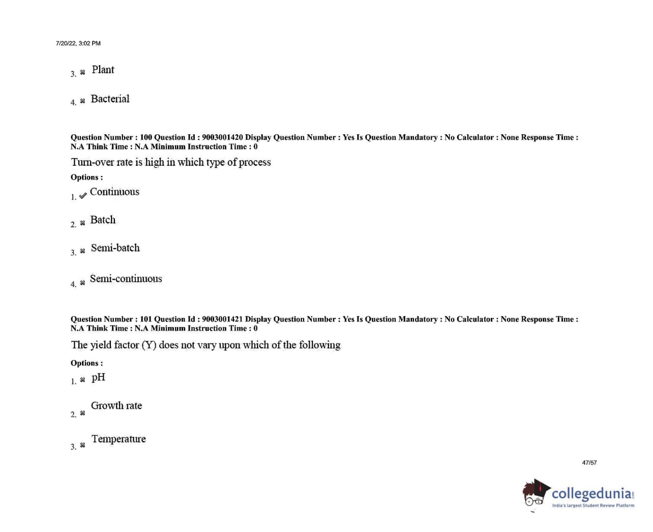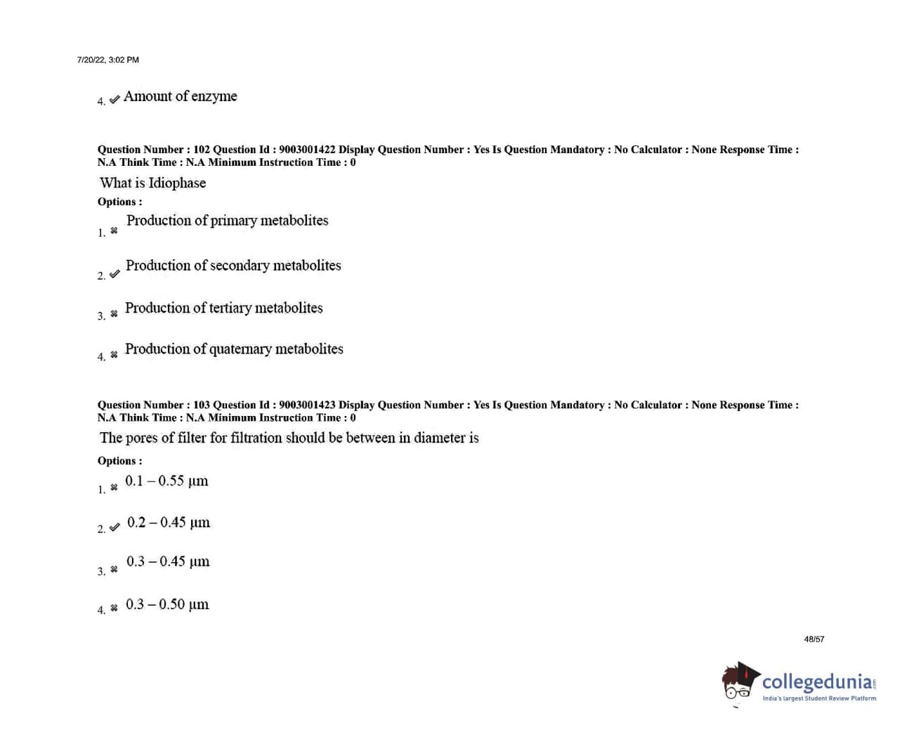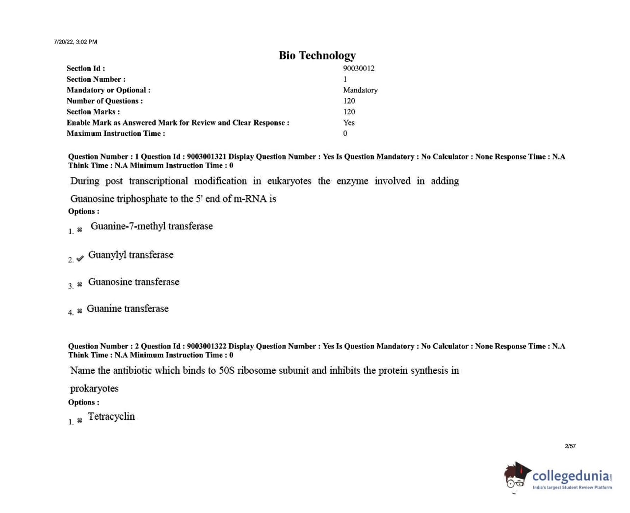 AP PGECET 2022 Biotechnology Question Paper with Answer Key PDFs Shift 1
