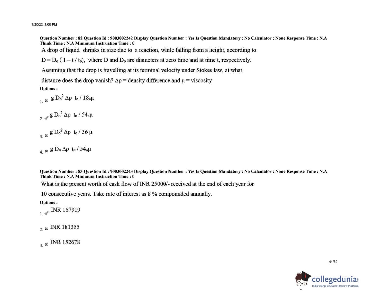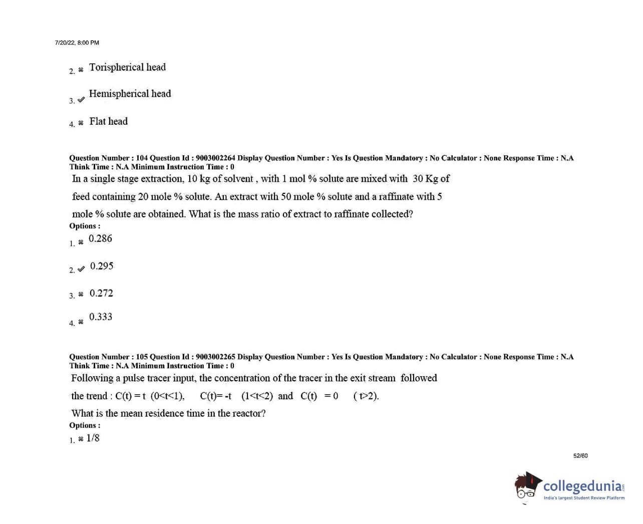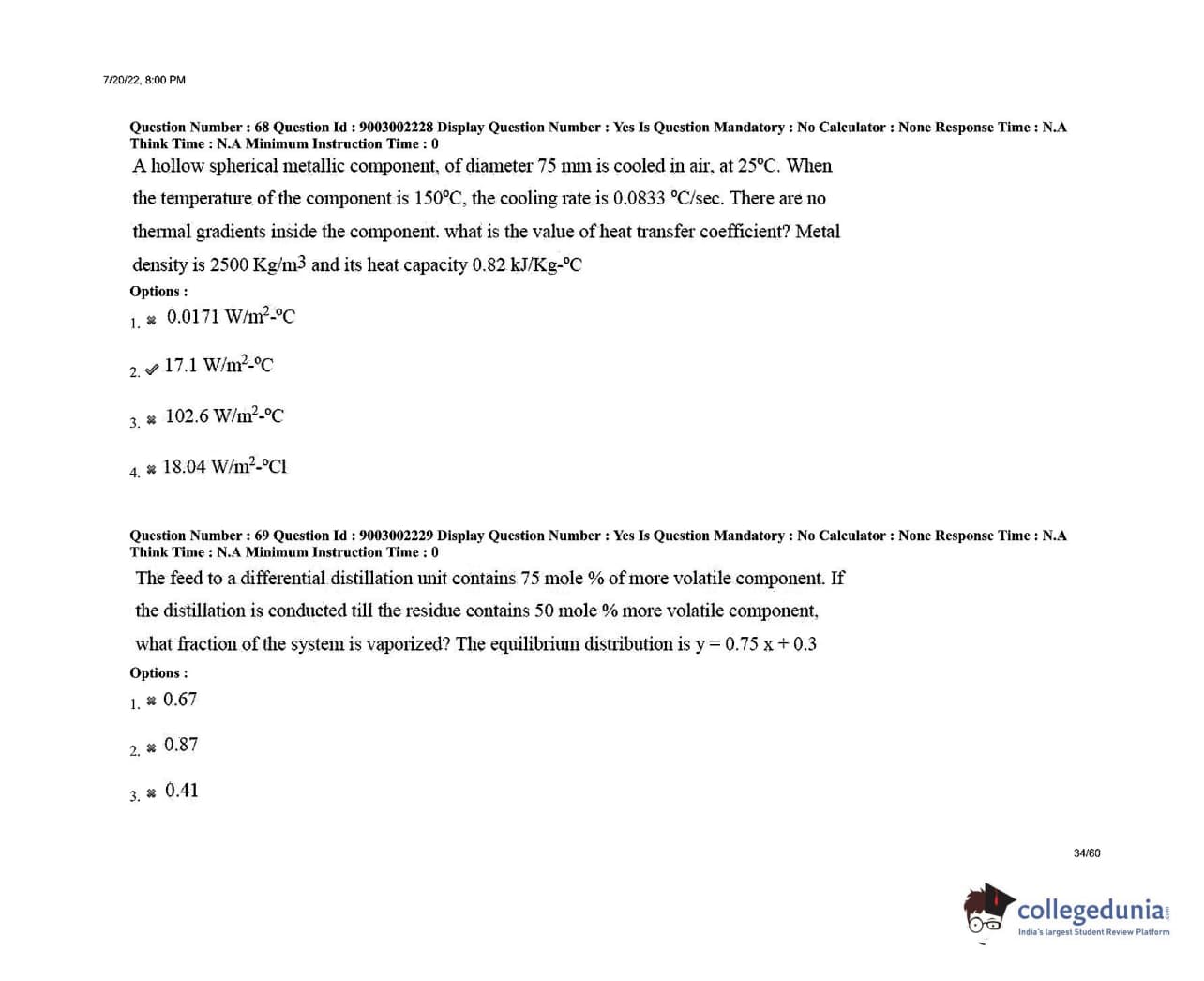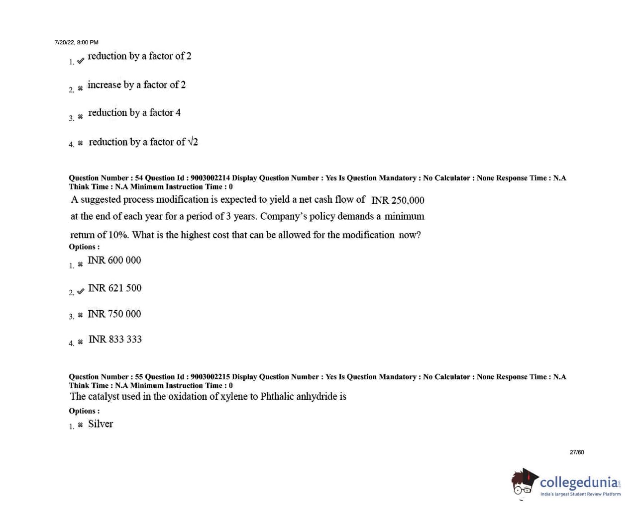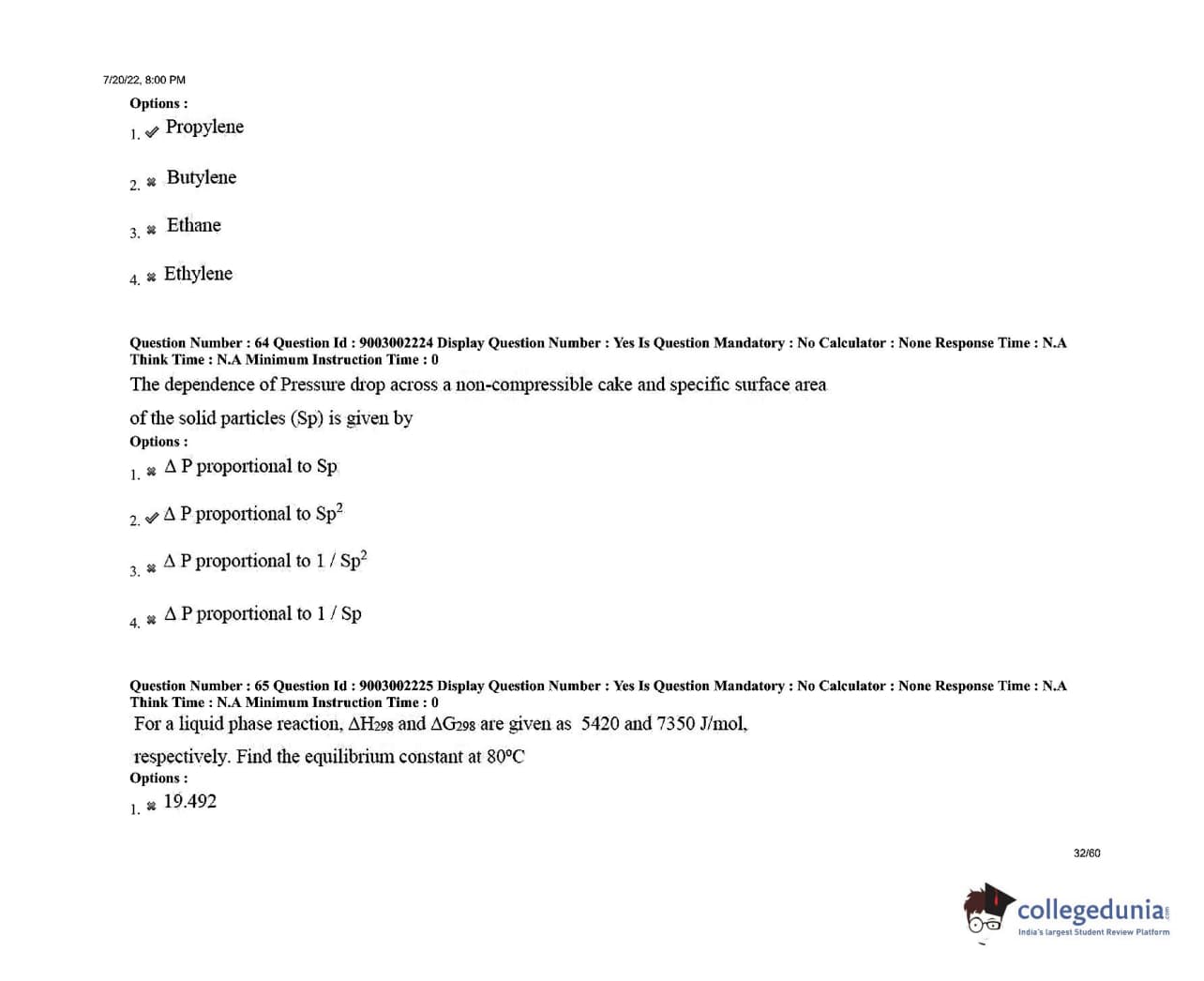 AP PGECET 2022 Chemical Engineering Question Paper with Answer Key PDFs Shift 1