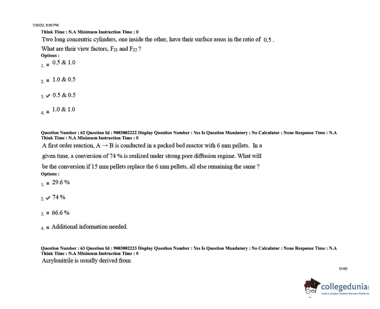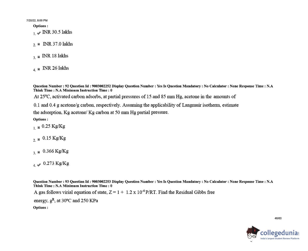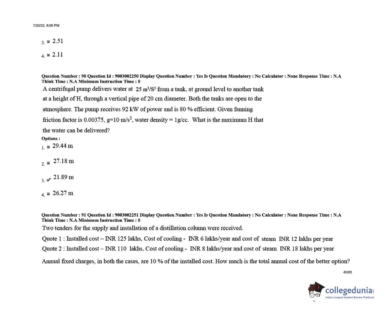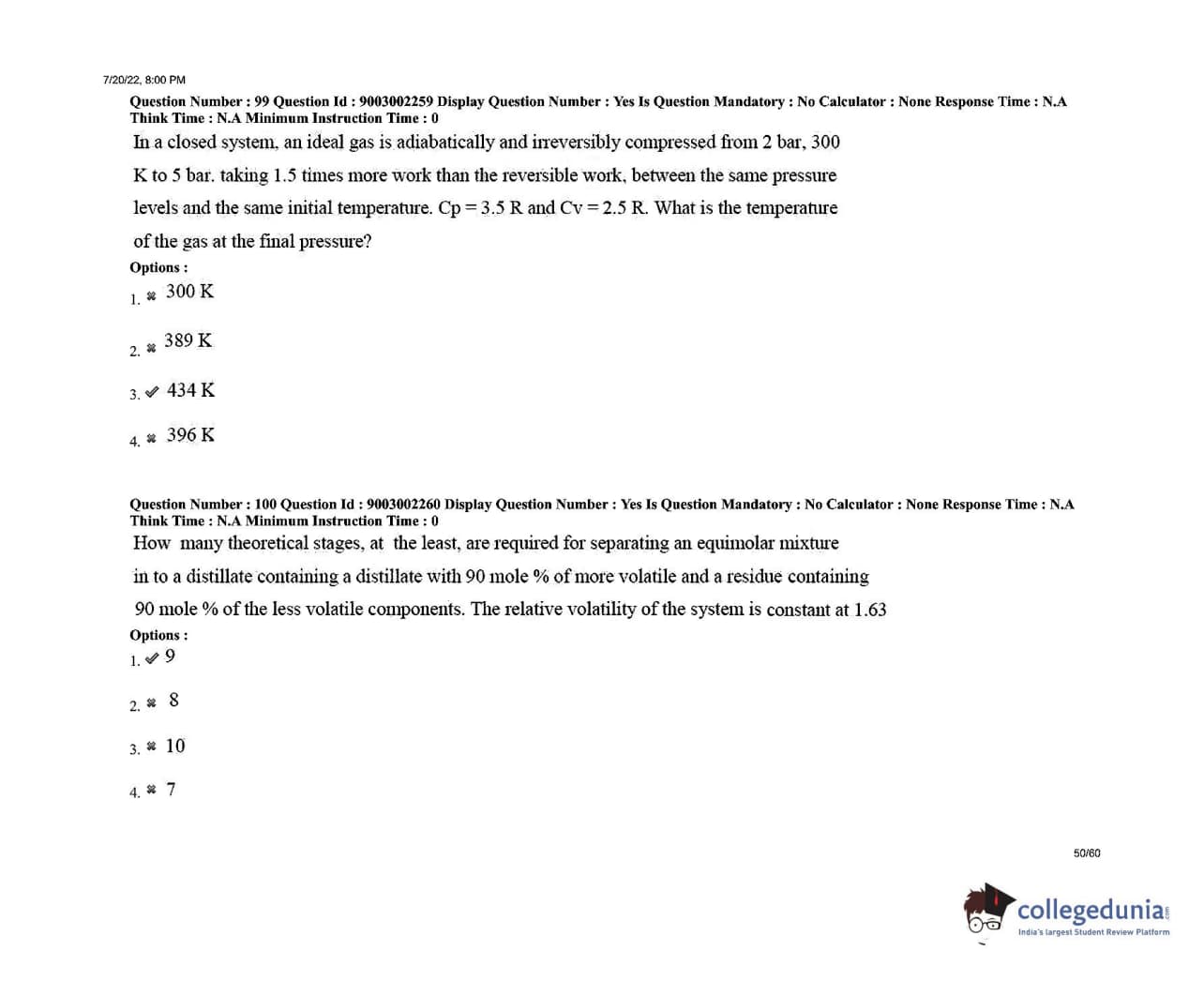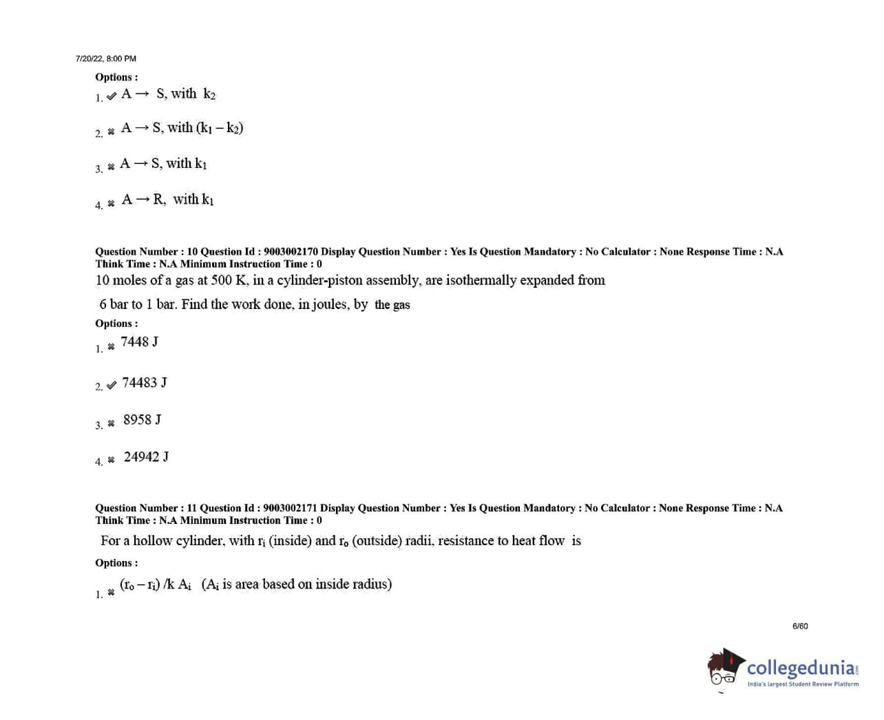 AP PGECET 2022 Chemical Engineering Question Paper with Answer Key PDFs Shift 1