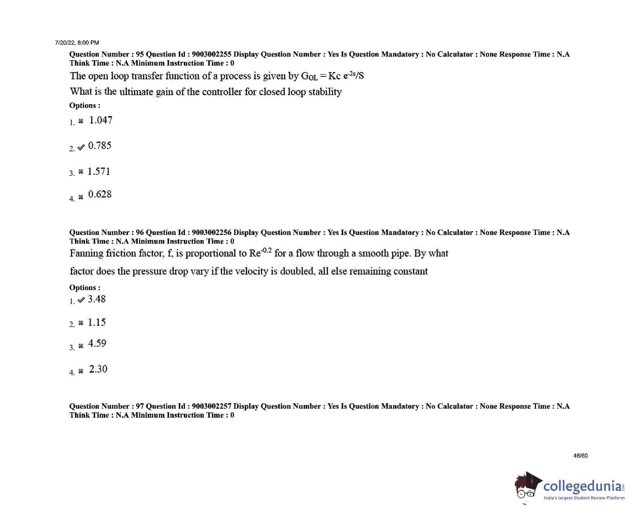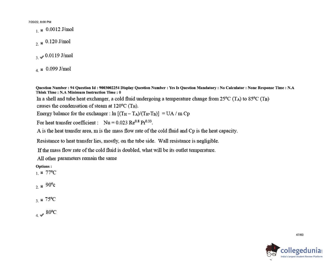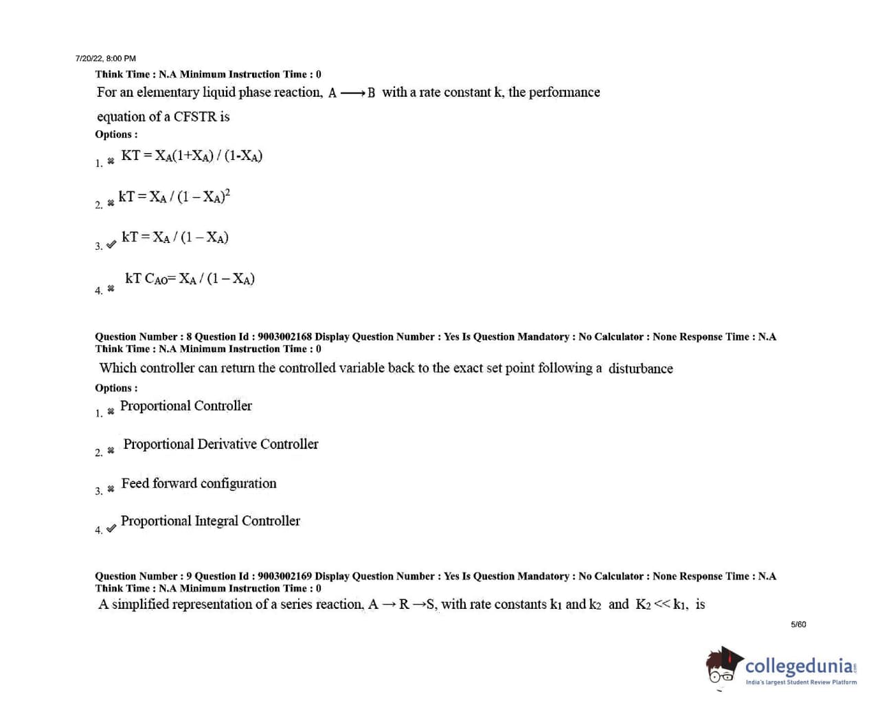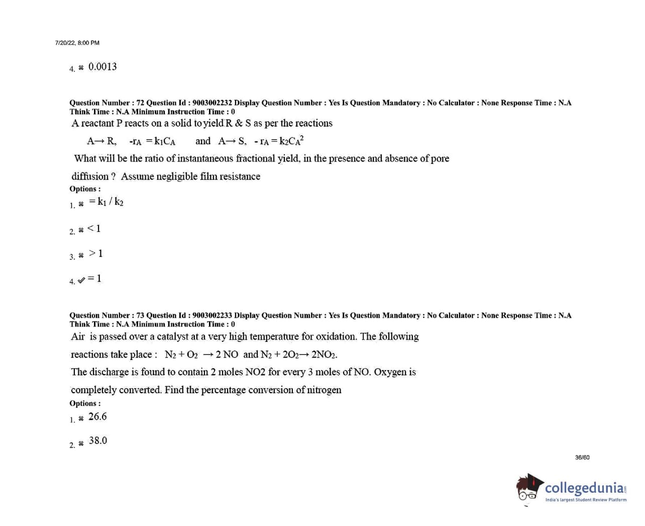 AP PGECET 2022 Chemical Engineering Question Paper with Answer Key PDFs Shift 1