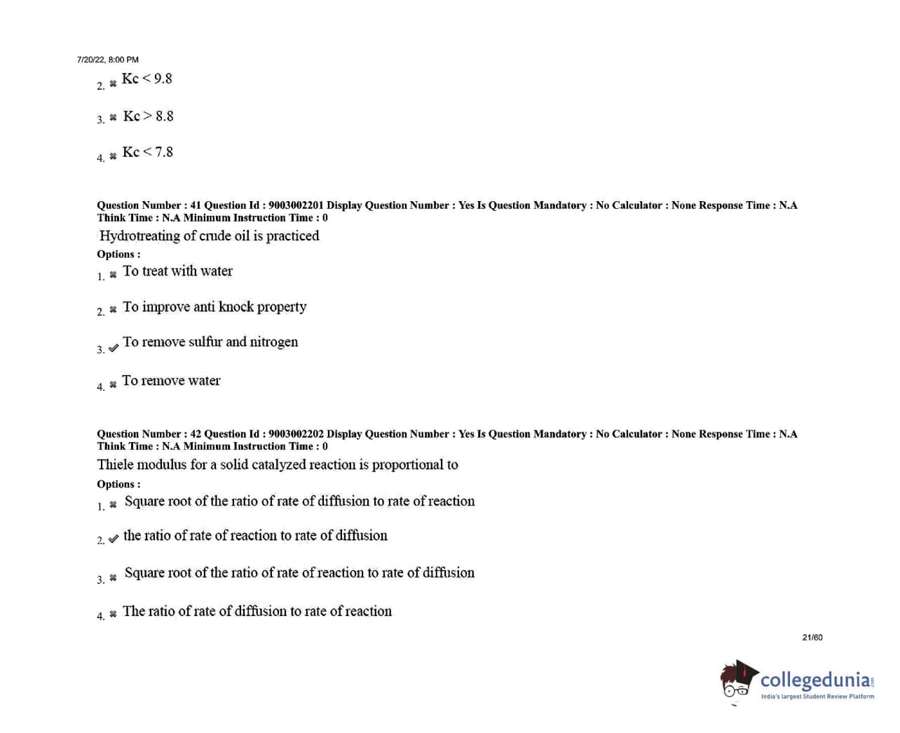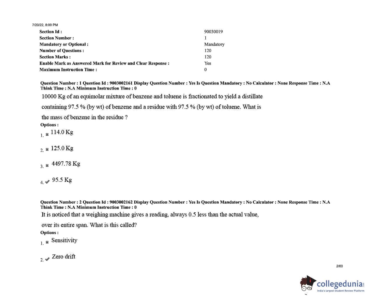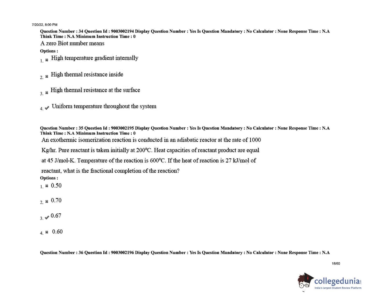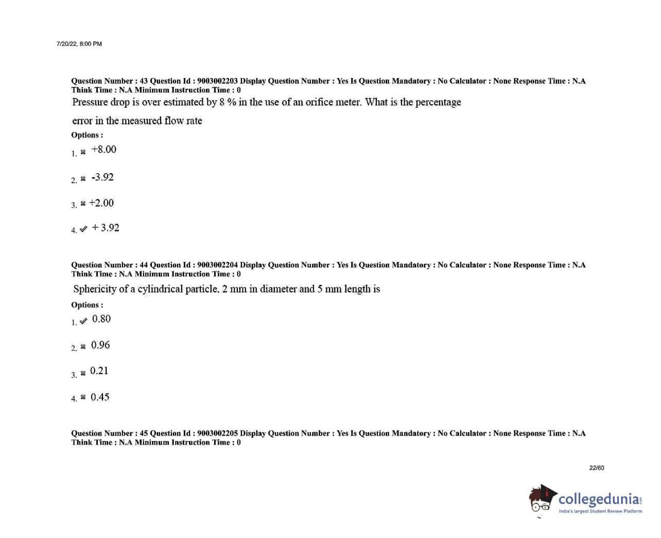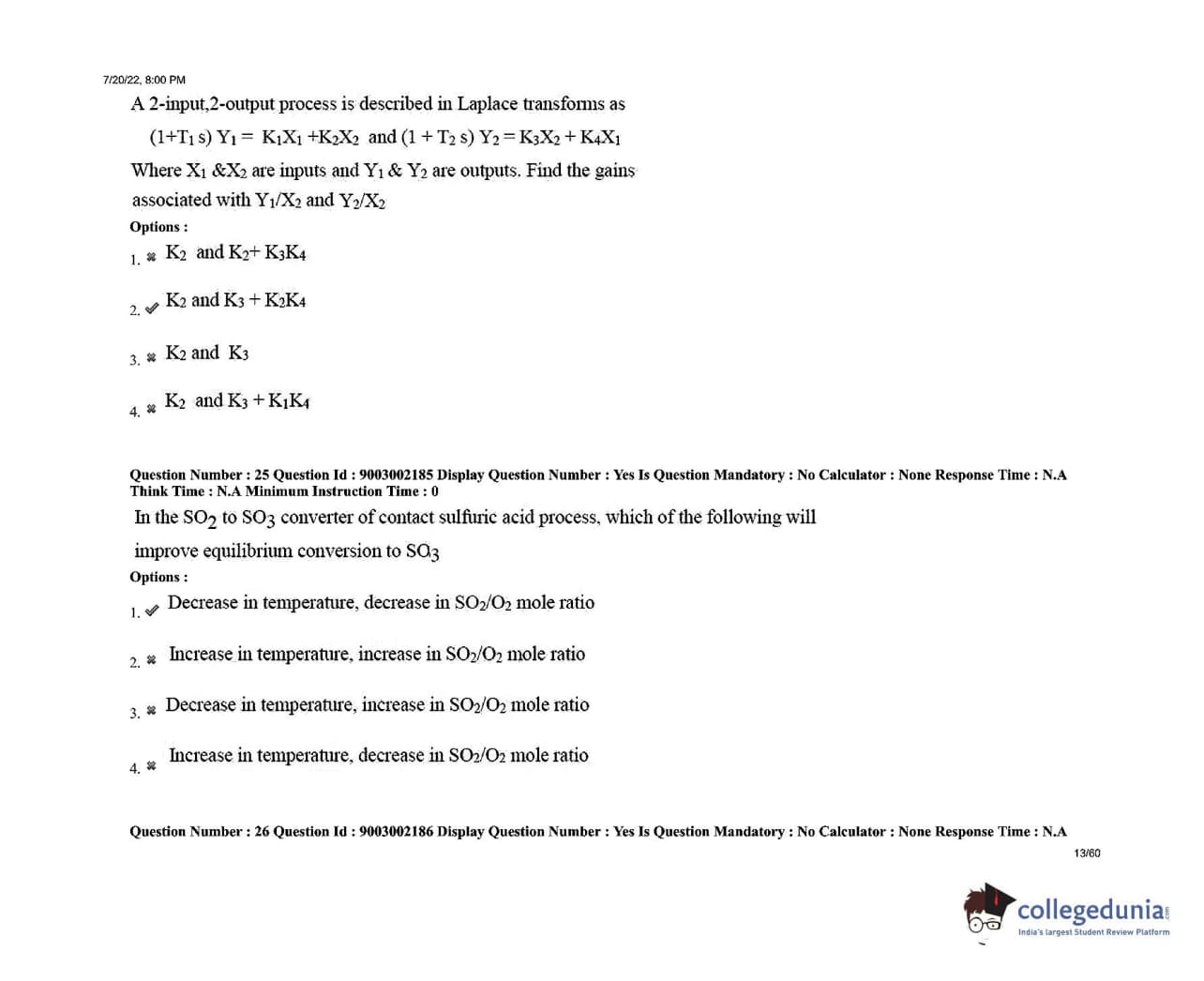 AP PGECET 2022 Chemical Engineering Question Paper with Answer Key PDFs Shift 1