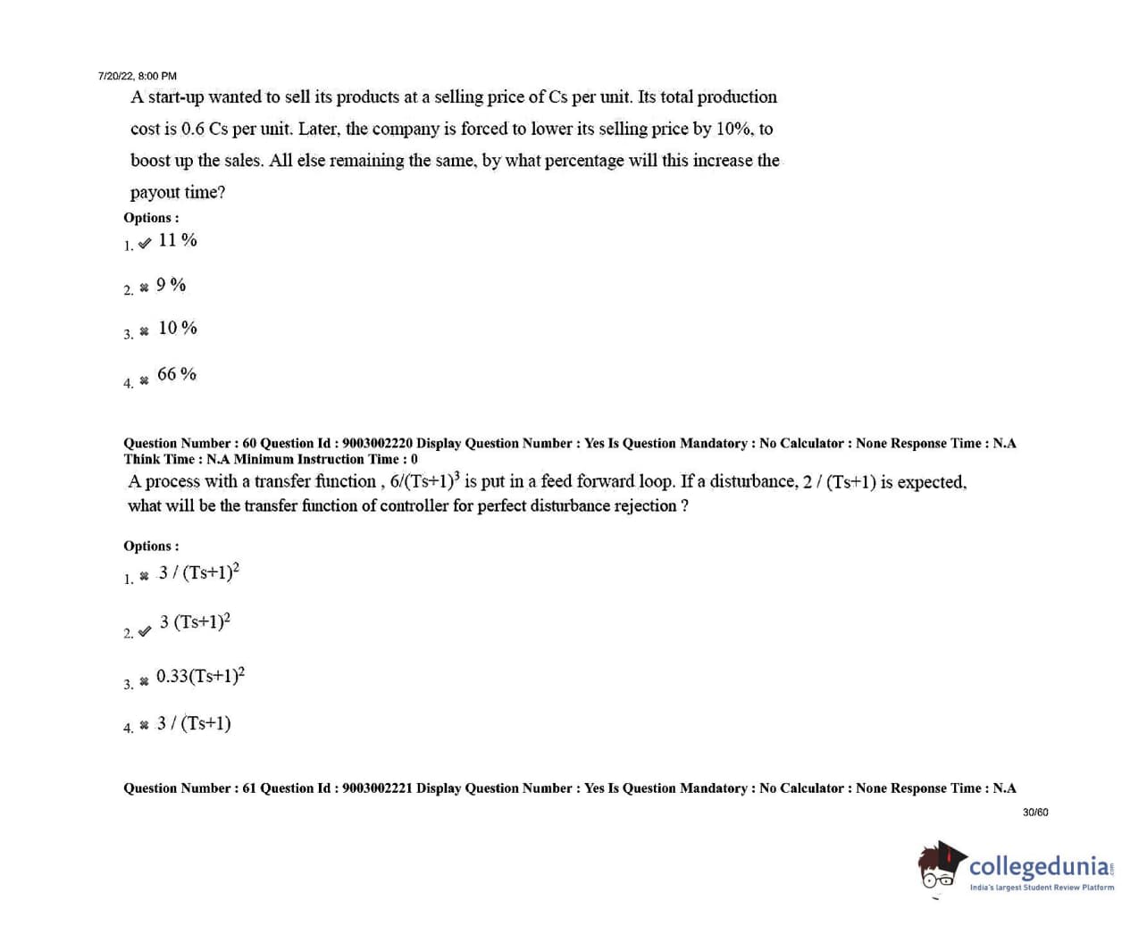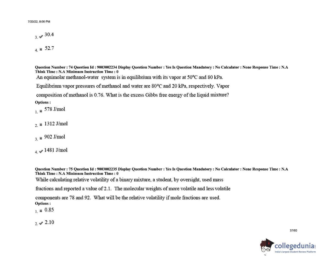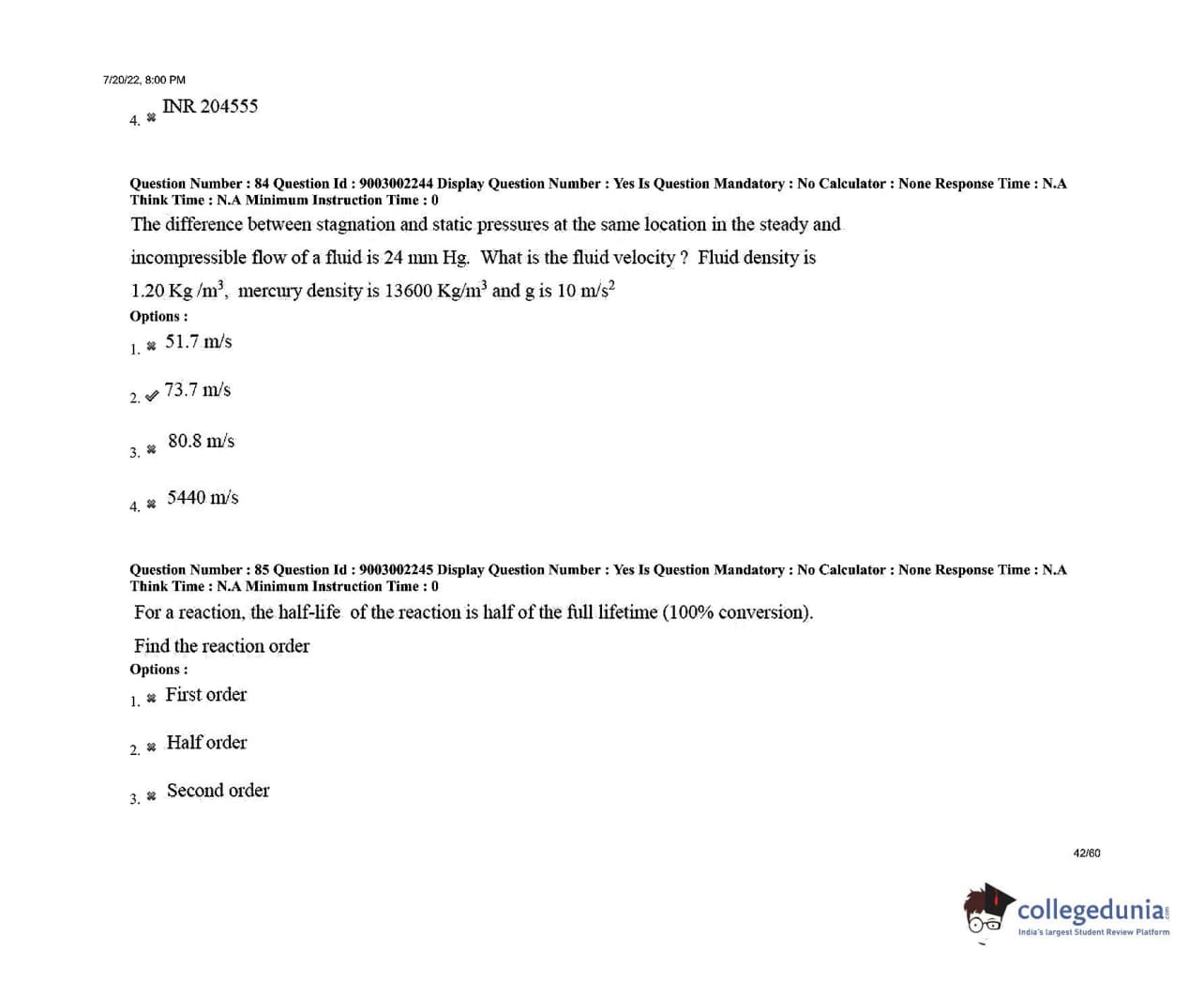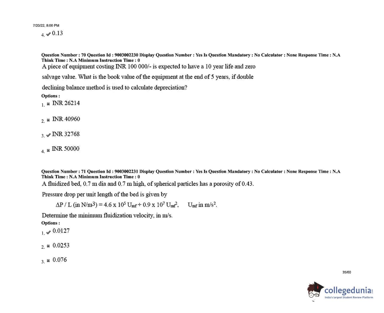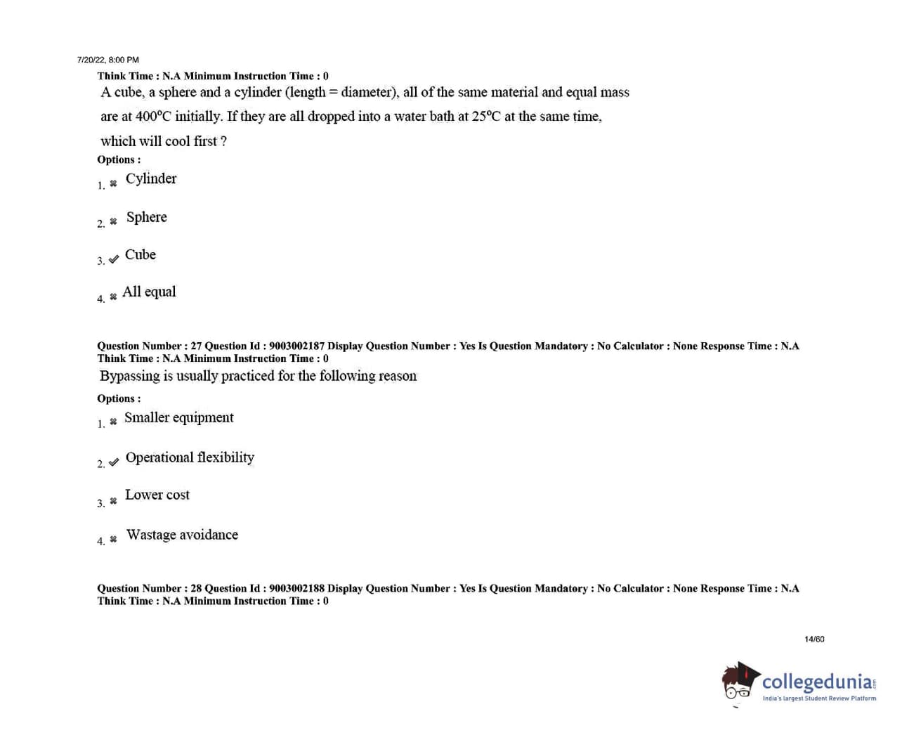 AP PGECET 2022 Chemical Engineering Question Paper with Answer Key PDFs Shift 1