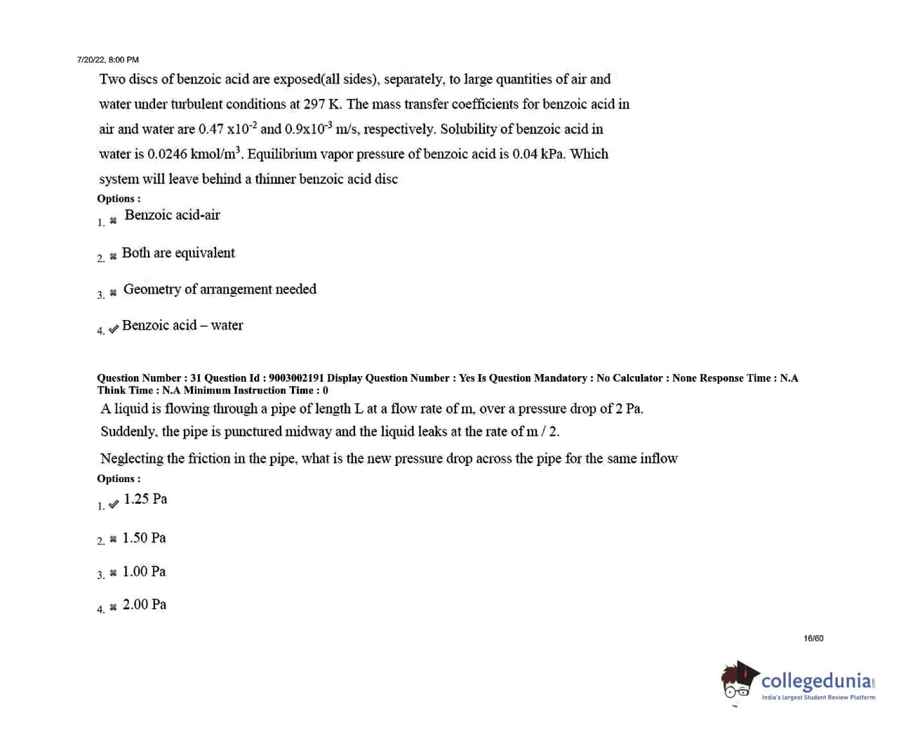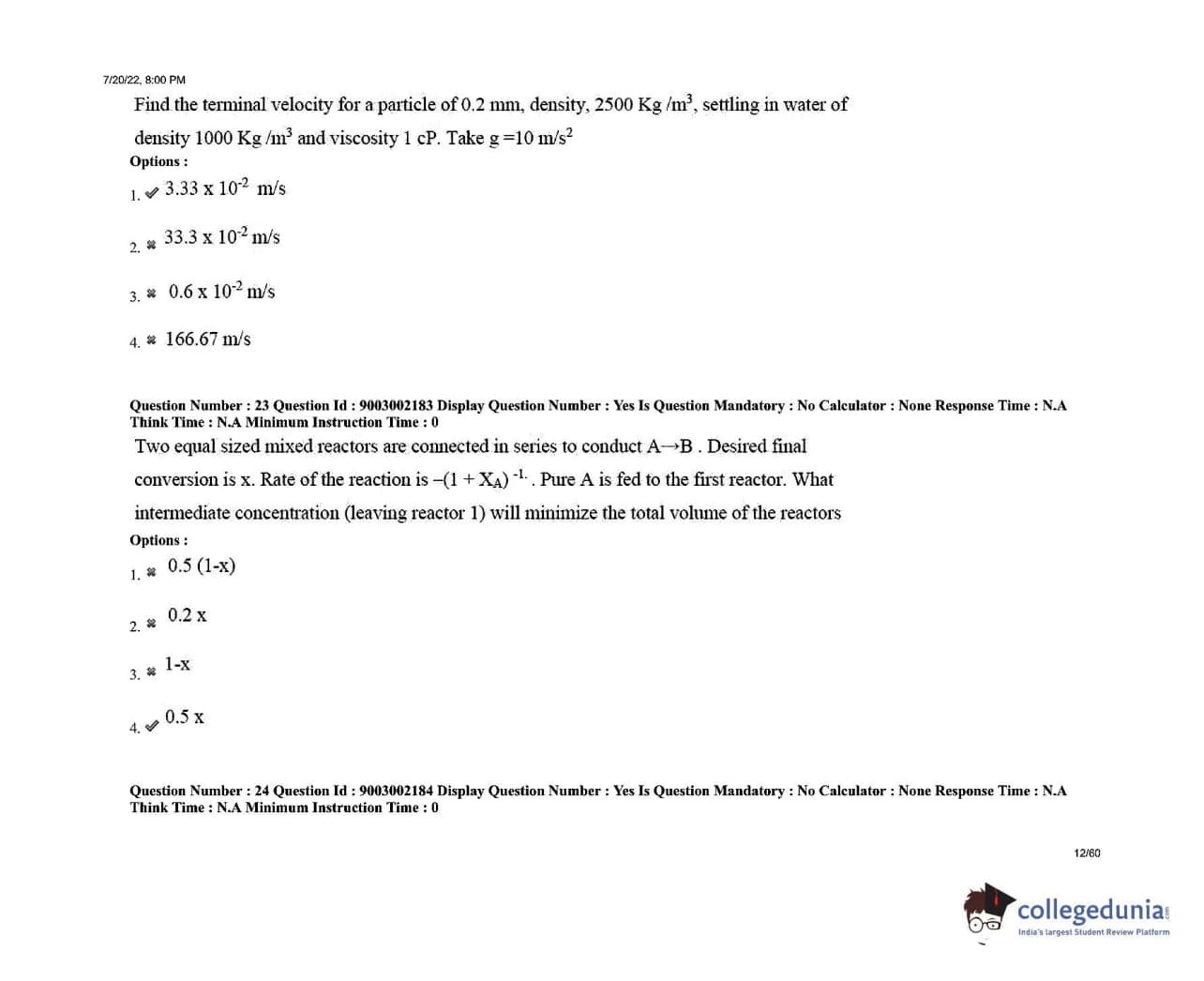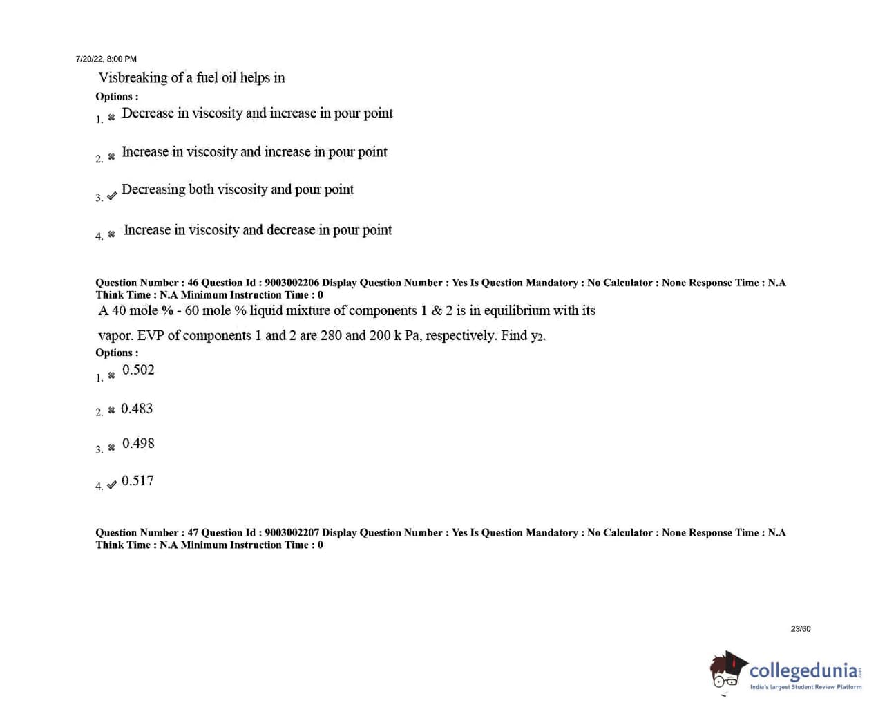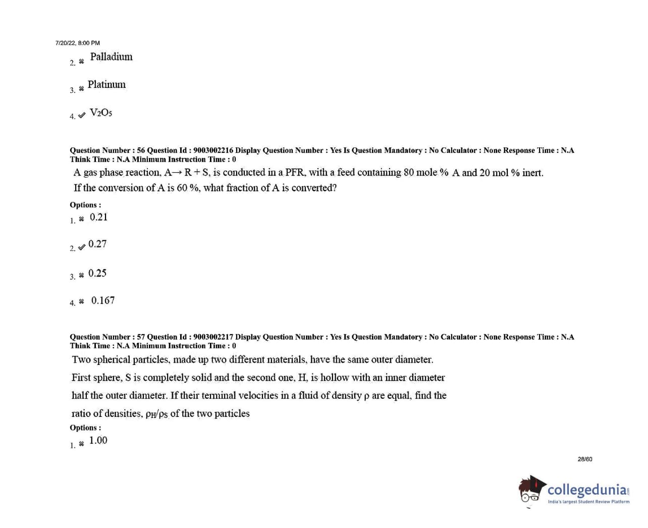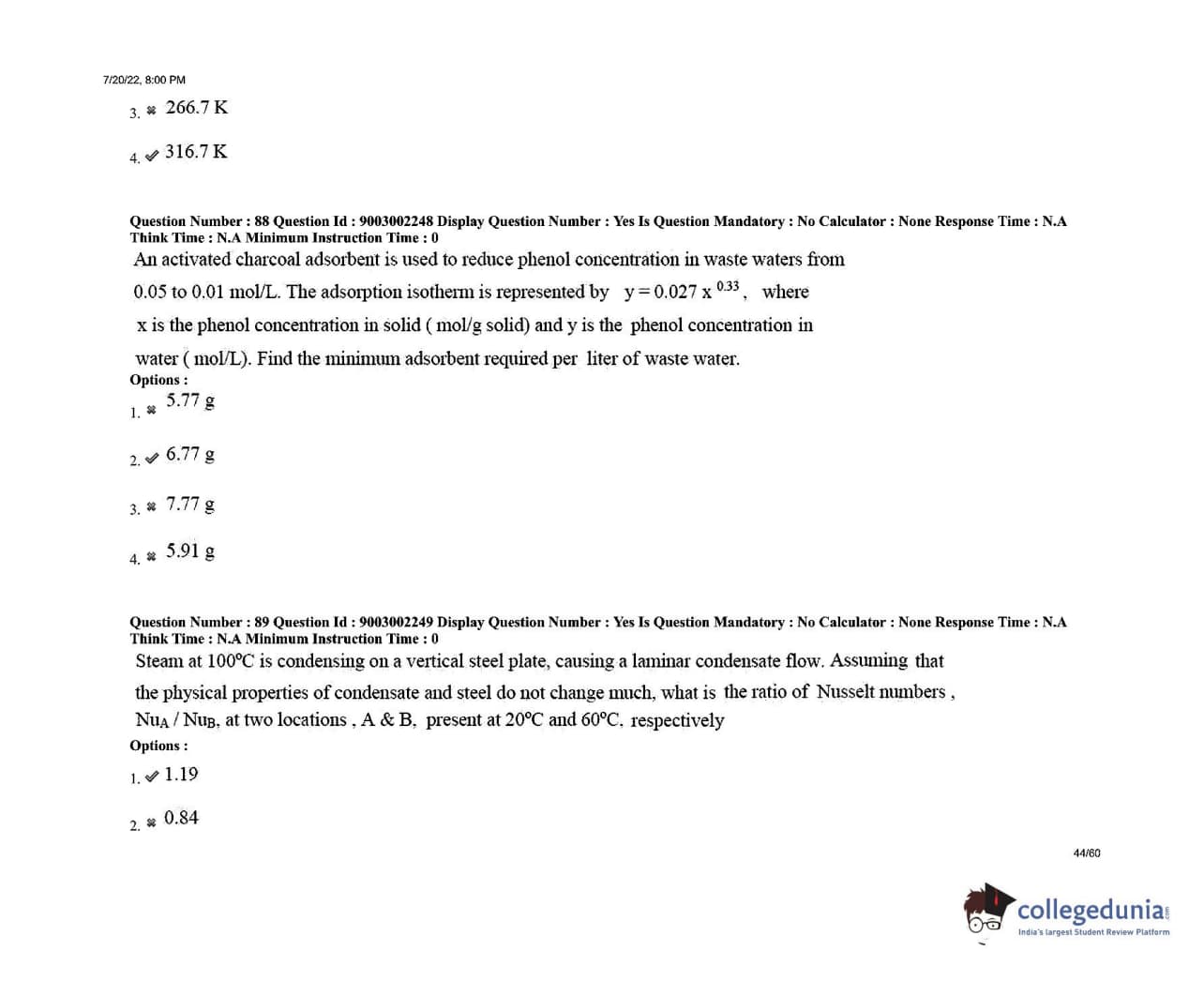 AP PGECET 2022 Chemical Engineering Question Paper with Answer Key PDFs Shift 1
