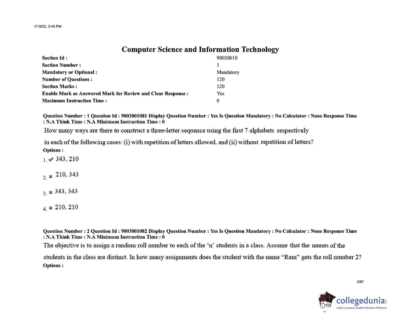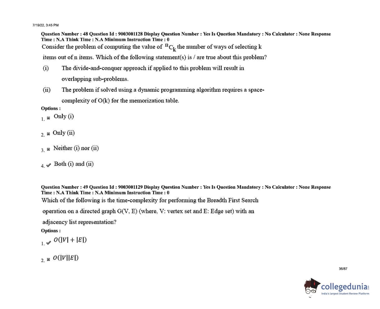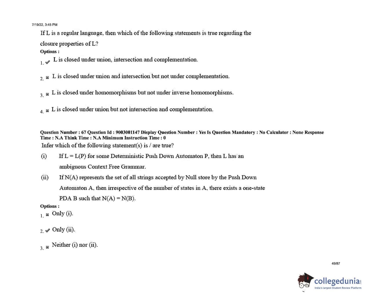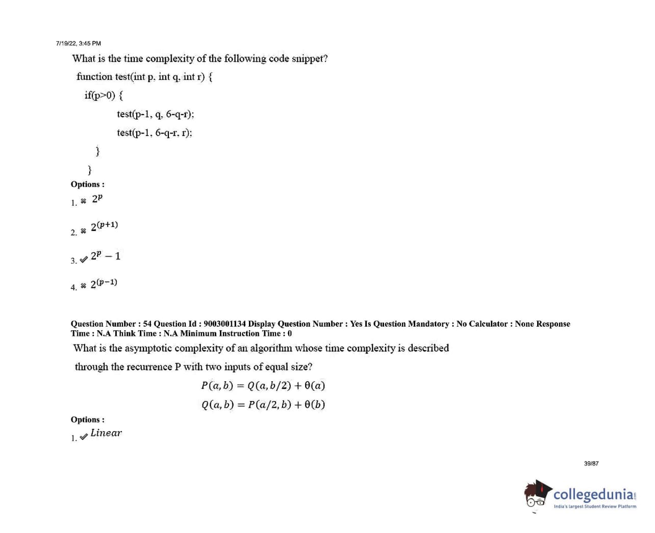 AP PGECET 2022 Computer Science Engineering Question Paper with Answer Key PDFs Shift 2
