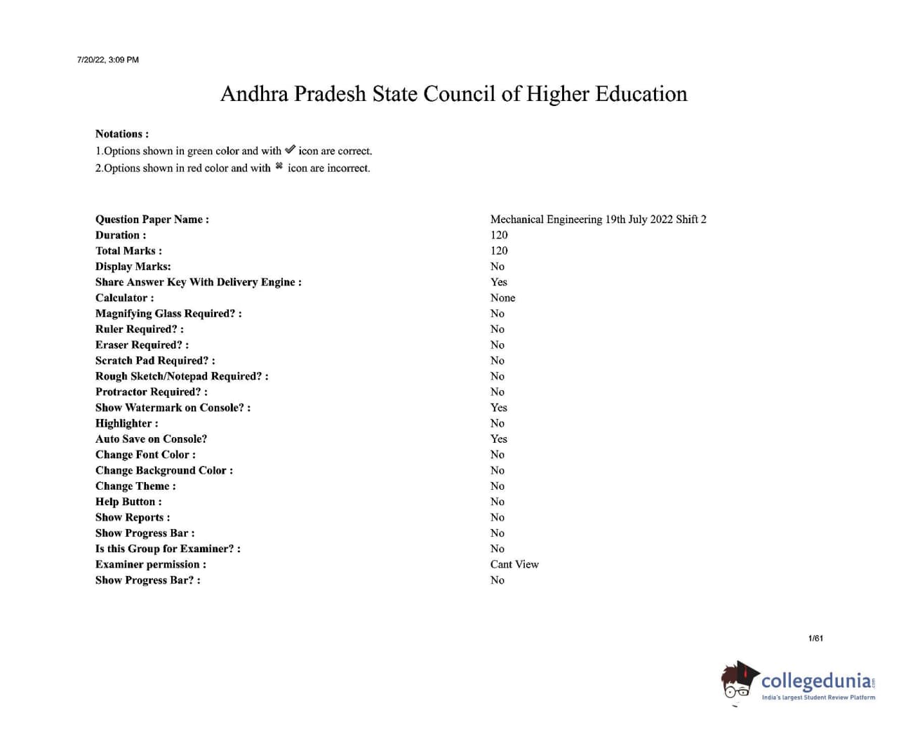 AP PGECET 2022 Mechanical Engineering Question Paper with Answer Key pdf is available for download. The exam was conducted by Sri Venkateswara University, Tirupati on July 19, 2022 in Shift 2. The question paper comprised a total of 120 questions.