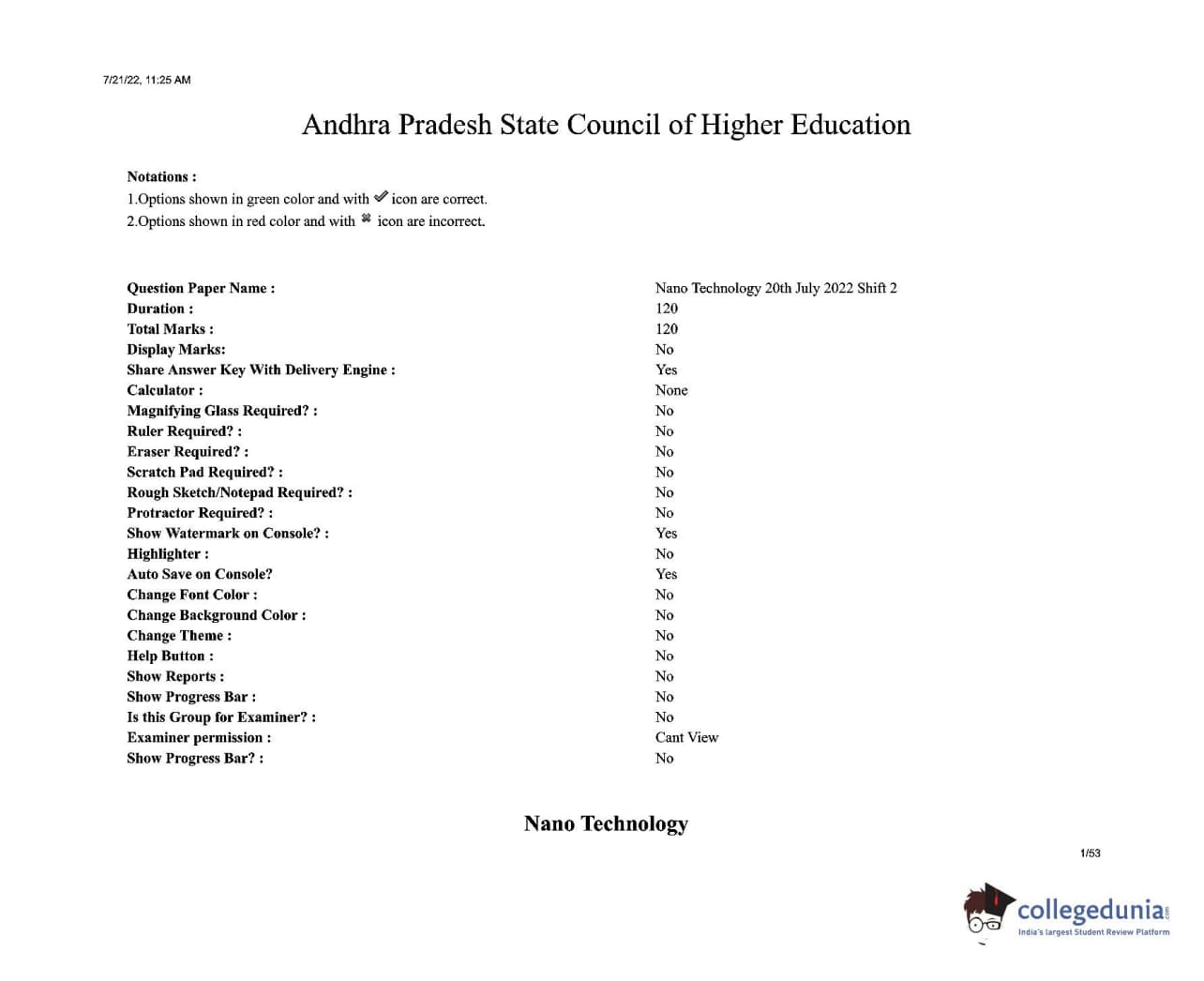 AP PGECET 2022 Nano Technology Question Paper with Answer Key PDFs Shift 2