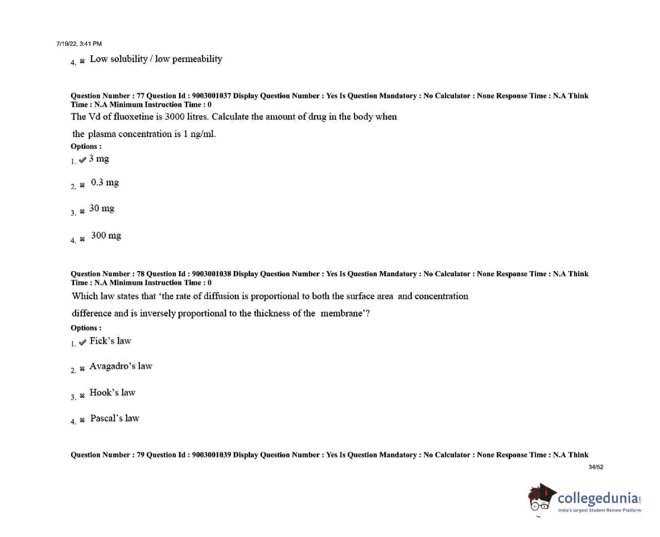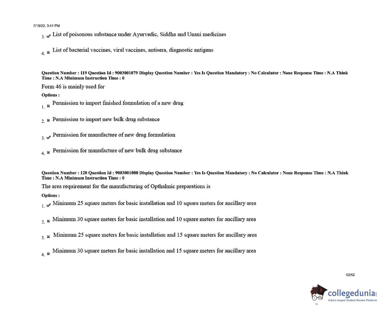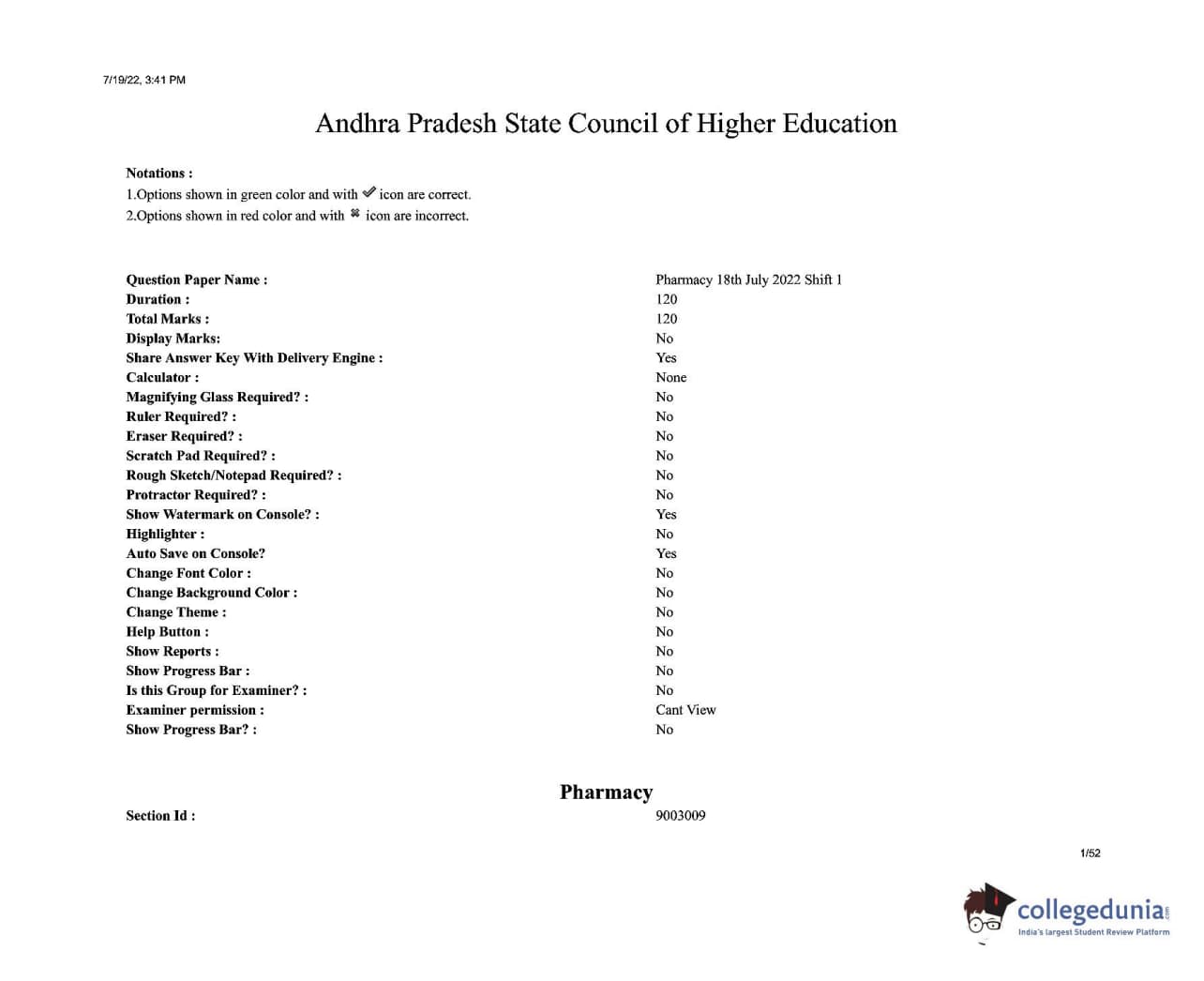 AP PGECET 2022 Pharmacy Question Paper with Answer Key PDFs Shift 1