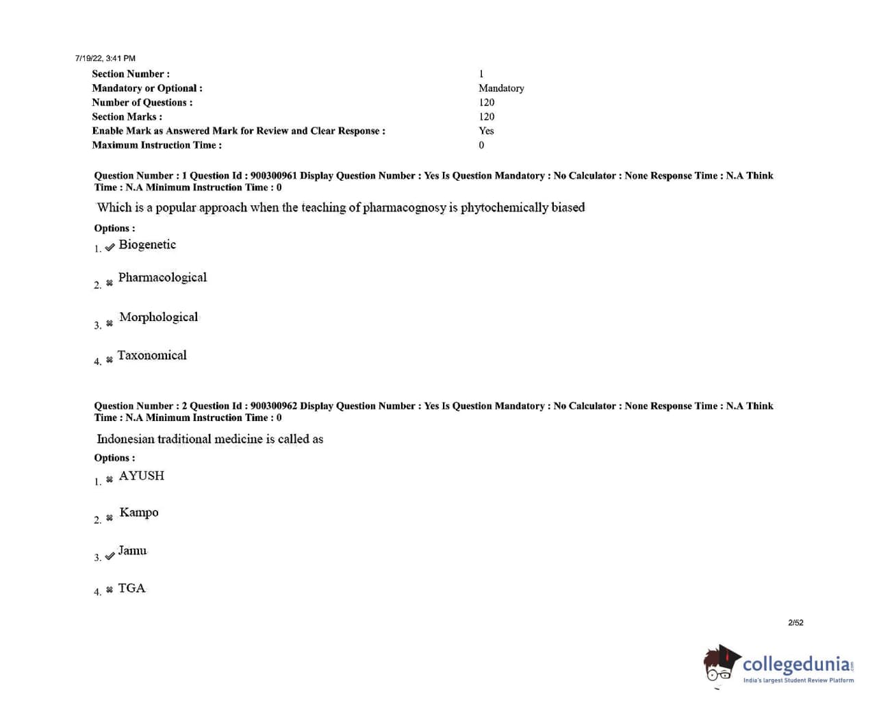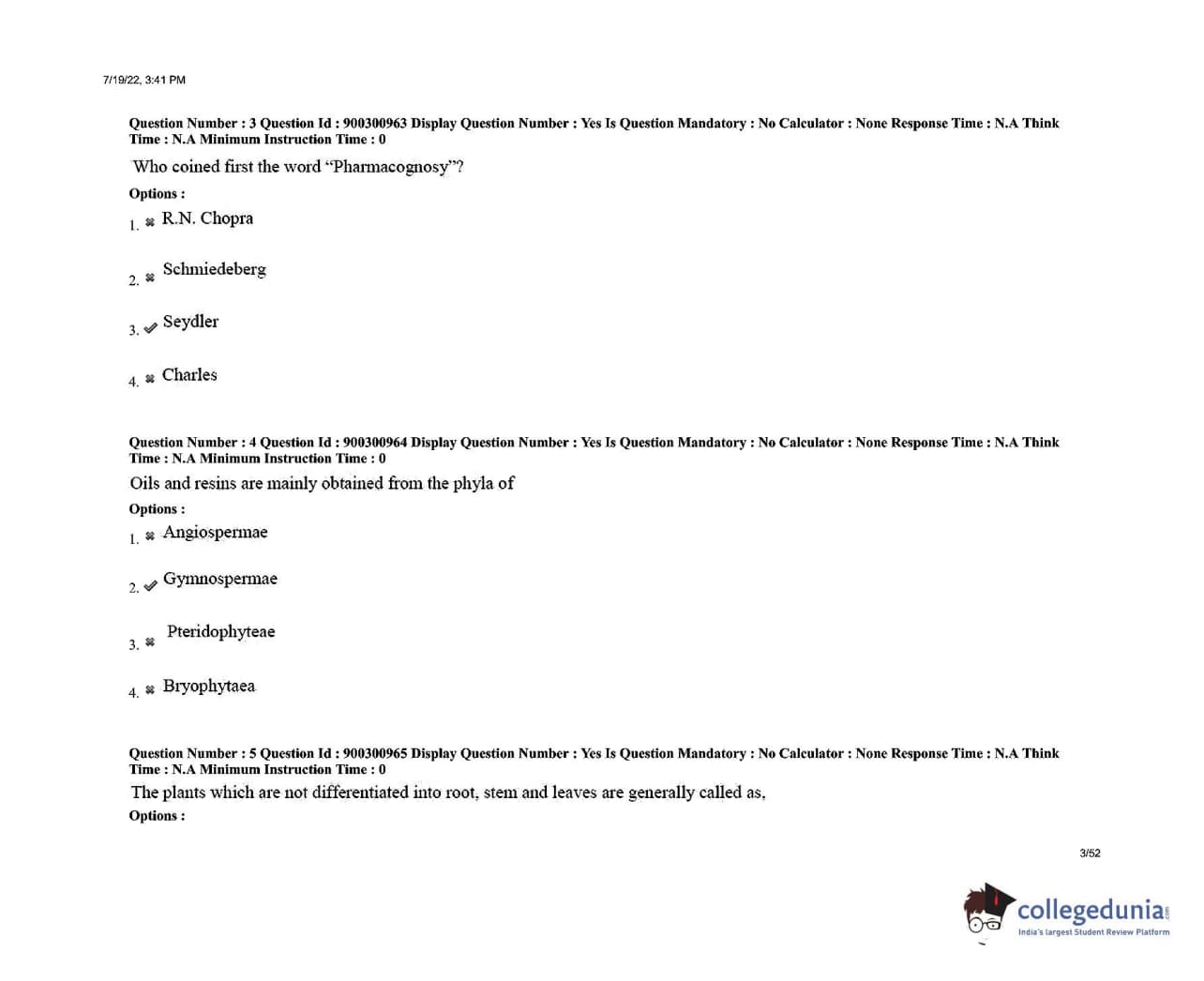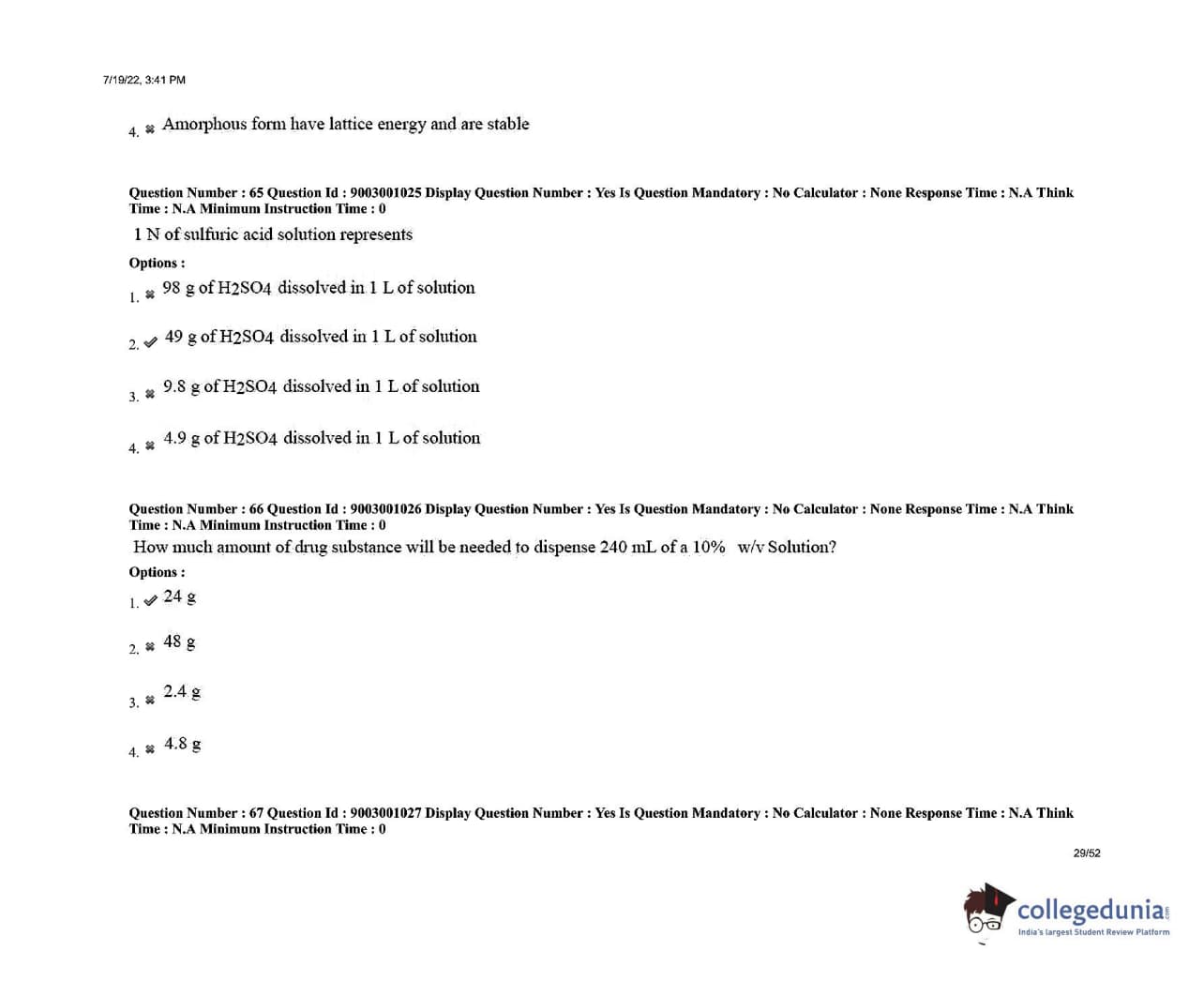 AP PGECET 2022 Pharmacy Question Paper with Answer Key PDFs Shift 1