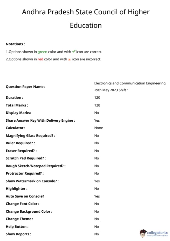 AP PGECET 2023 Electronics And Communication Engineering Question Paper with Answer key PDF is available here for download. AP PGECET 2023 was Conducted by Sri Venkateswara University, Tirupati on behalf of APSCHE on May 29, 2023. AP PGECET 2023 EC Question Paper consisted of 120 questions carrying 1 mark for each.