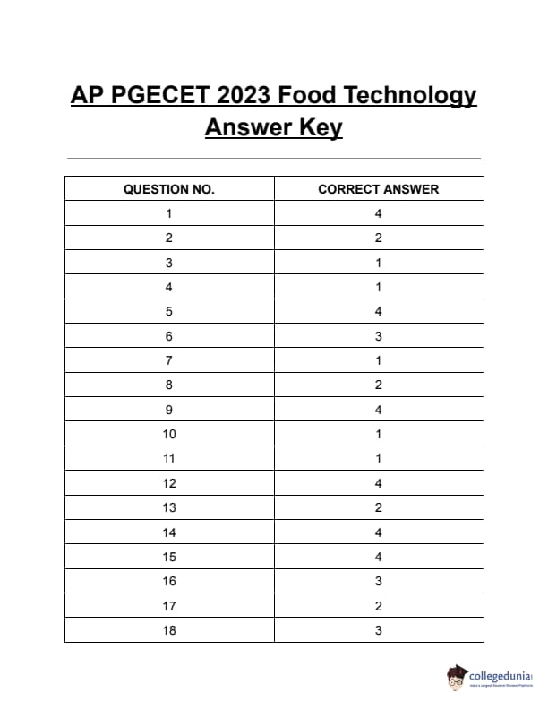 AP PGECET 2023 Food Technology Question Paper with Answer key PDF is available here for download. AP PGECET 2023 was Conducted by Sri Venkateswara University, Tirupati on behalf of APSCHE on May 29, 2023. AP PGECET 2023 FT Question Paper consisted of 120 questions carrying 1 mark for each.