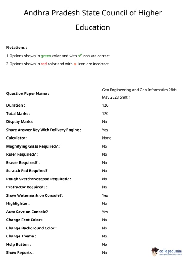 AP PGECET 2023 Geo Engineering and Geo Informatics Question Paper with Answer key PDF is available here for download. AP PGECET 2023 was Conducted by Sri Venkateswara University, Tirupati on behalf of APSCHE on May 28, 2023. AP PGECET 2023 GG Question Paper consisted of 120 questions carrying 1 mark for each.