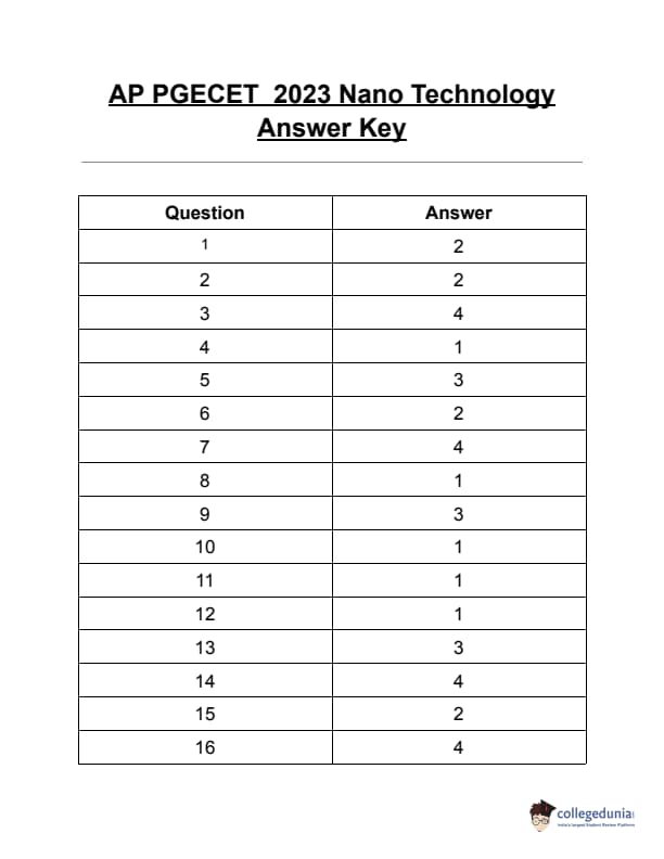 | AP PGECET 2023 NT Question Paper PDF | AP PGECET 2023 NT Answer Key PDF |