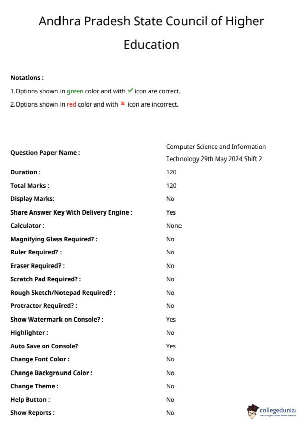 AP PGECET 2024 Computer Science Engineering Question Paper is available for download here. Sri Venkateswara University, Tirupati on behalf of APSCHE conducted AP PGECET 2024 Computer Science Engineering on May 29 in Shift 2 from 2.30 PM to 4.30 PM. AP PGECET Question Paper 2024 consists of 120 MCQ-based questions in total carrying 1 mark each to be attempted in the duration of 2 hours.