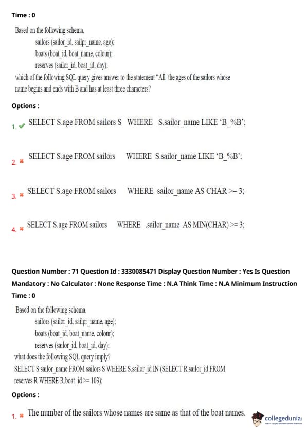 Which of the following SQL queries returns all the ages of sailors whose names begin and end with ‘B’ and have at least three characters?