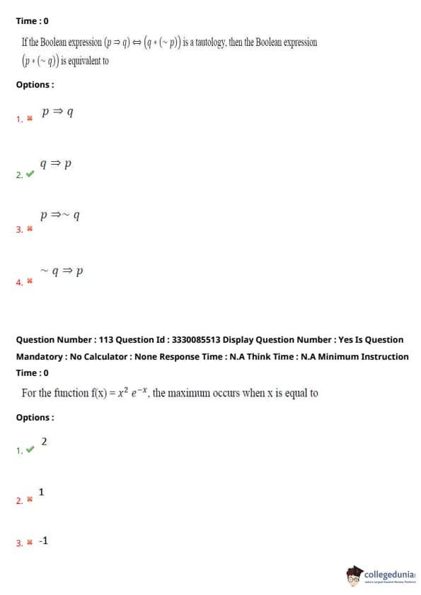 Therefore, the correct answer is **(2) \( q \Rightarrow p \)**. Quick Tip: Tautologies often help us find relationships between variables. Here, simplifying the expression helps us deduce the correct equivalence for the given Boolean expression.