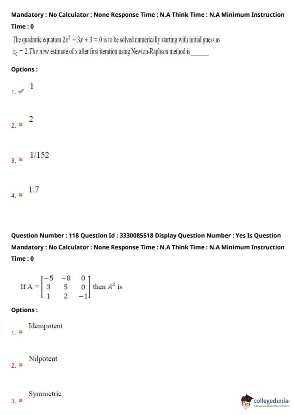 Therefore, the correct answer is **(1) 1**. Quick Tip: The Newton-Raphson method is an iterative technique for finding successively better approximations to the roots of a real-valued function. If the initial guess is close enough to the true root, the method converges rapidly.