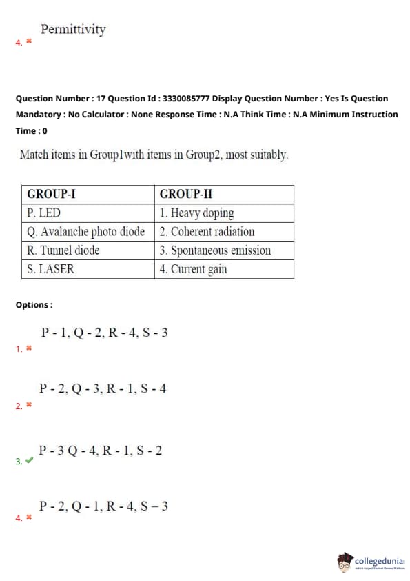 - (4) P - 2, Q - 1, R - 4, S - 3