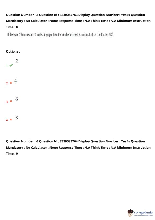 If there are 5 branches and 4 nodes in the graph, then the number of mesh equations that can be formed are?