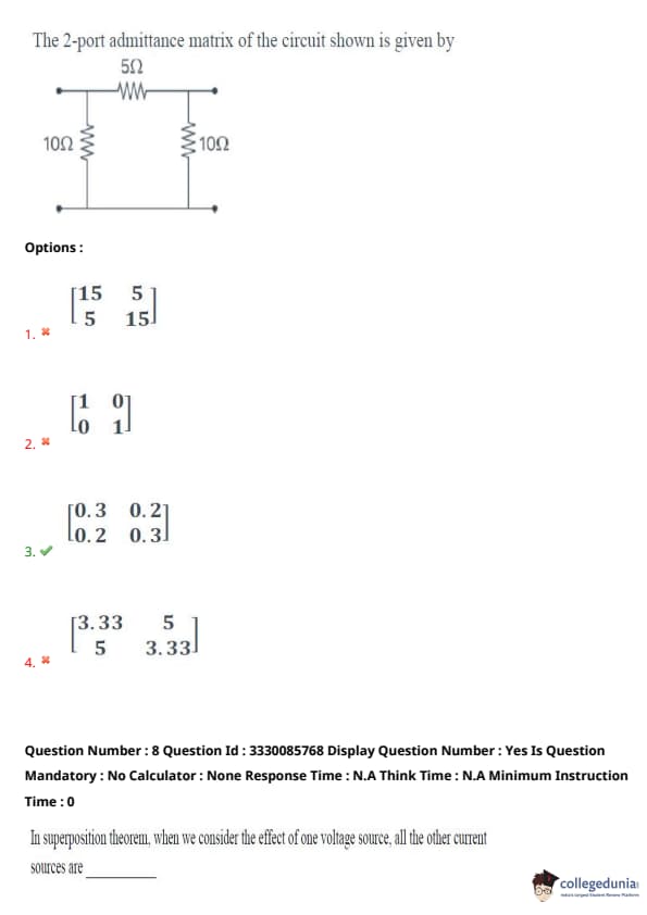 - (3) \(\frac{8}{3}\) Ohms