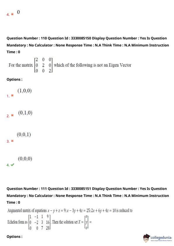 0 & 0 & 2 \end{bmatrix}\) which of the following is not an Eigen Vector