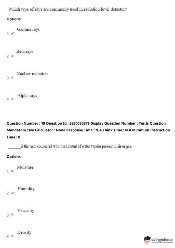 Question 19: \hspace{2cm} is the term connected with the amount of water vapour present in air or gas.