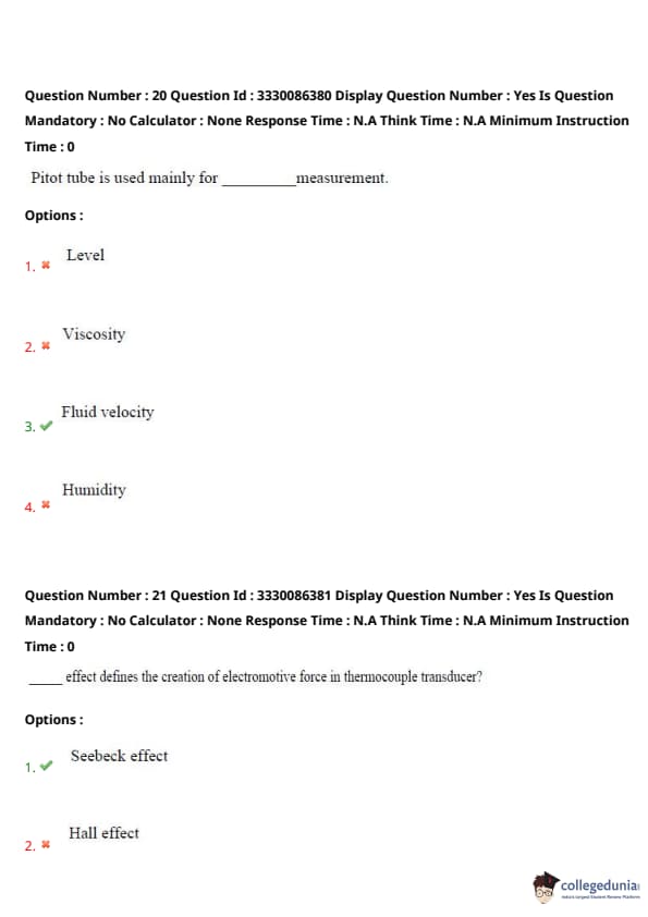 Question 20: Pitot tube is used mainly for \hspace{2cm} measurement.