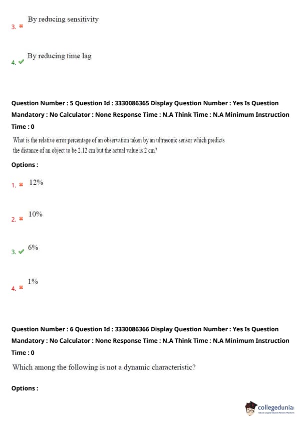 Question 5: What is the relative error percentage of an observation taken by an ultrasonic sensor which predicts the distance of an object to be 2.12 cm but the actual value is 2 cm?