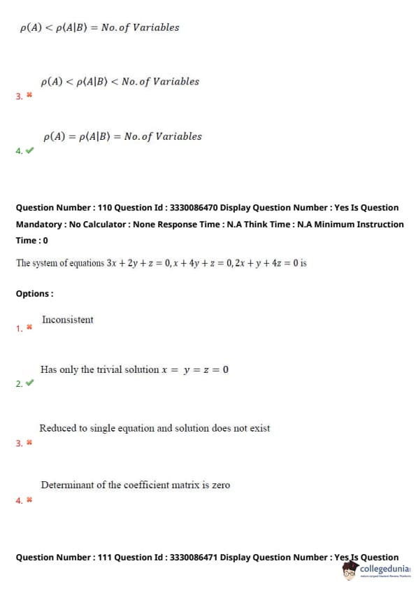 - (4) \( \rho(A) = \rho(A|B) = No. of Variables \)