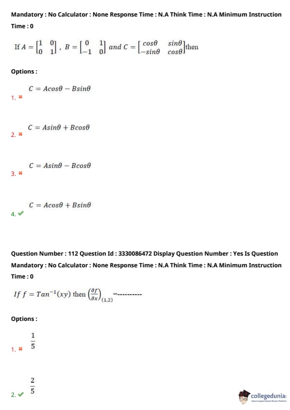 Question 112: If \( f = Tan^{-1}(xy) \) then \( \left(\frac{\partial f}{\partial x}\right)_{(1,2)} = ----------- \)