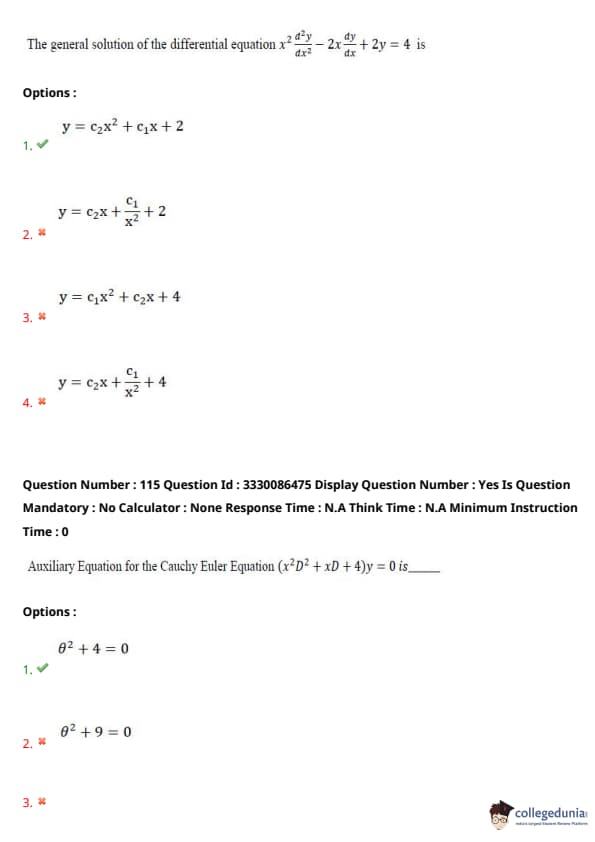 Question 114: The general solution of the differential equation \( x^2 \frac{d^2y}{dx^2} - 2x \frac{dy}{dx} + 2y = 4 \) is