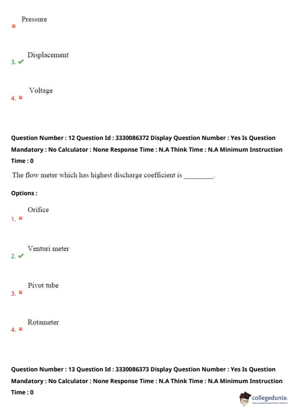 Question 12: The flow meter which has highest discharge coefficient is \hspace{2cm}.