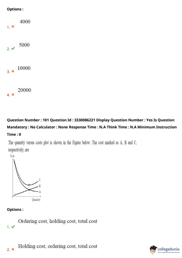 The quantity versus costs plot is shown in the figure below. The costs marked as A, B, and C, respectively, are