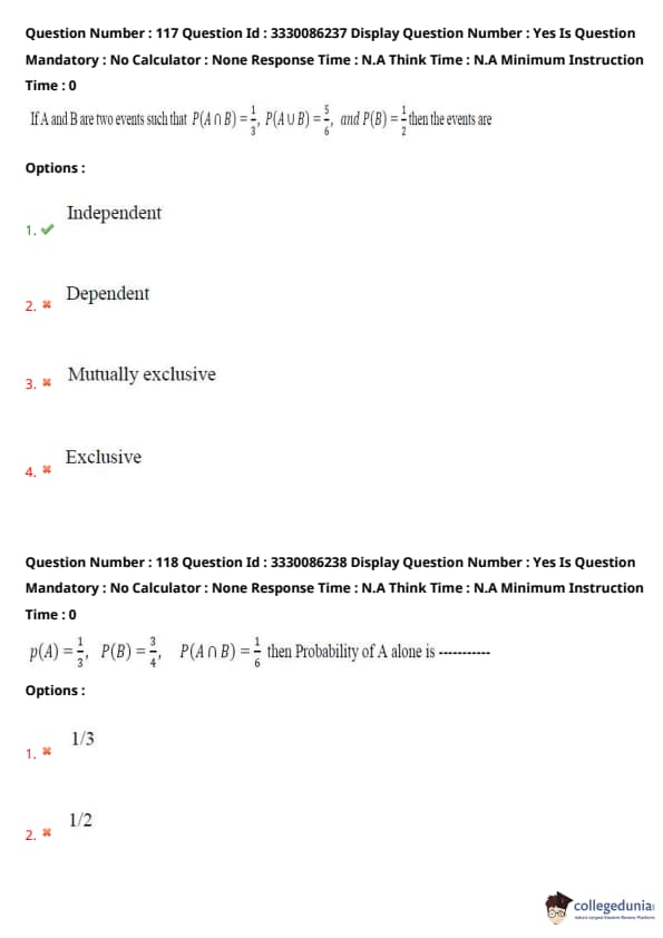 If \( A \) and \( B \) are two events such that \( P(A \cap B) = \frac{1}{3}, P(A \cup B) = \frac{5}{6}, \) and \( P(B) = \frac{1}{2} \), then the events are