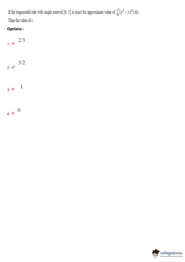 If the trapezoidal rule with a single interval [0, 1] is exact for the approximate value of \( \int_0^1 (x^3 - cx^2) \, dx \). Then the value of \( c \).