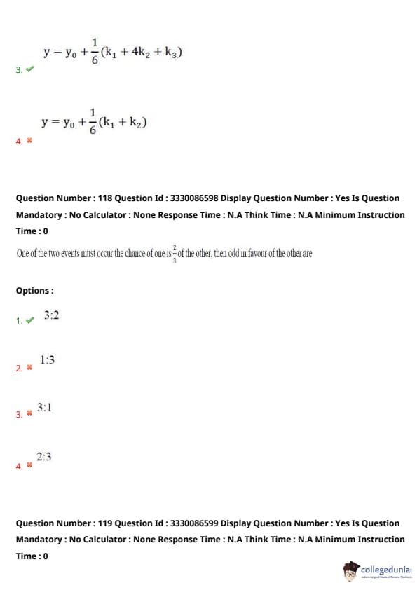 - (2) \( y = y_0 + \frac{1}{3}(k_1 + 4k_2 + k_3) \)
