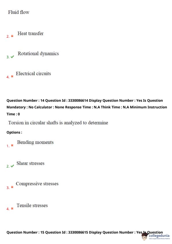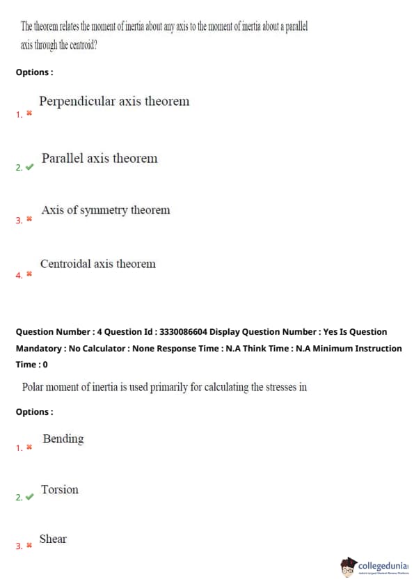 Question 4: Polar moment of inertia is used primarily for calculating the stresses in