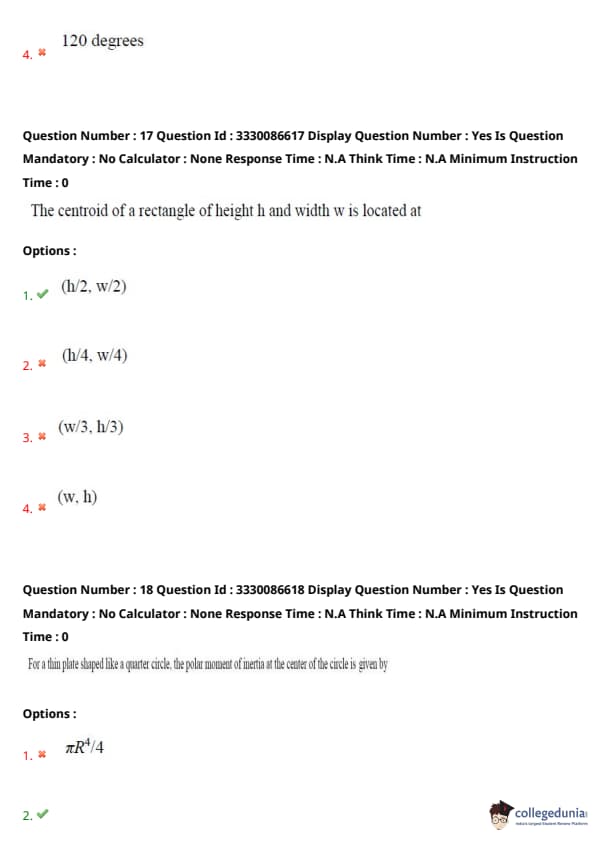 Question 18: For a thin plate shaped like a quarter circle, the polar moment of inertia at the center of the circle is given by