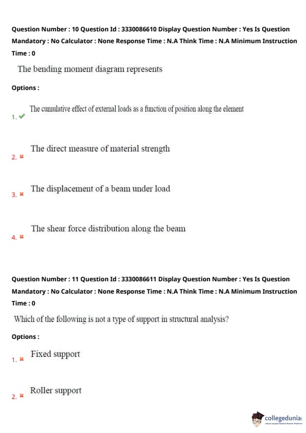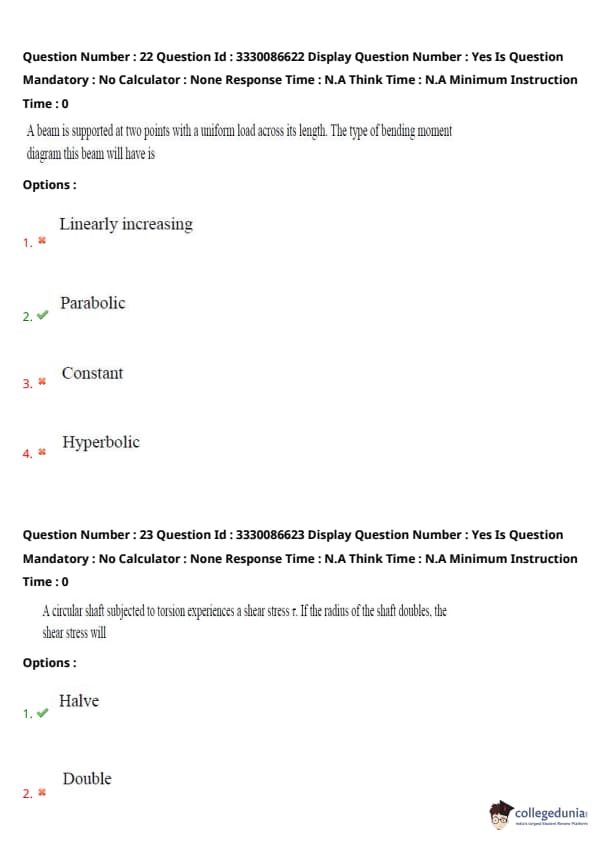 Question 22: A beam is supported at two points with a uniform load across its length. The type of bending moment diagram this beam will have is