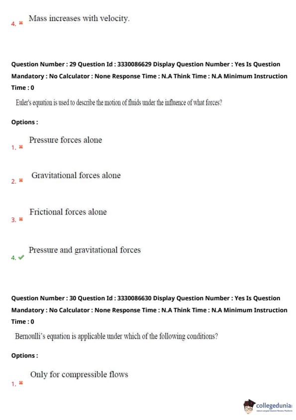 Question 29: Euler's equation is used to describe the motion of fluids under the influence of what forces?