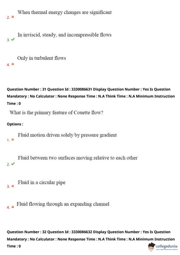 Question 30: Bernoulli's equation is applicable under which of the following conditions?