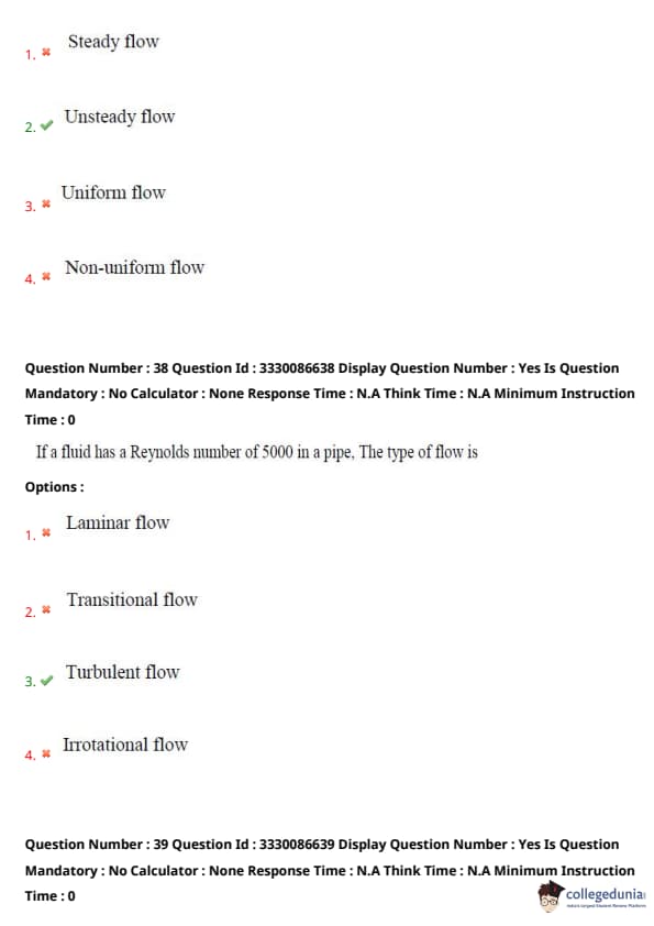 Question 38: If a fluid has a Reynolds number of 5000 in a pipe. The type of flow is