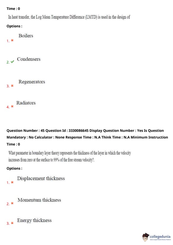 Question 44: In heat transfer, the Log Mean Temperature Difference (LMTD) is used in the design of