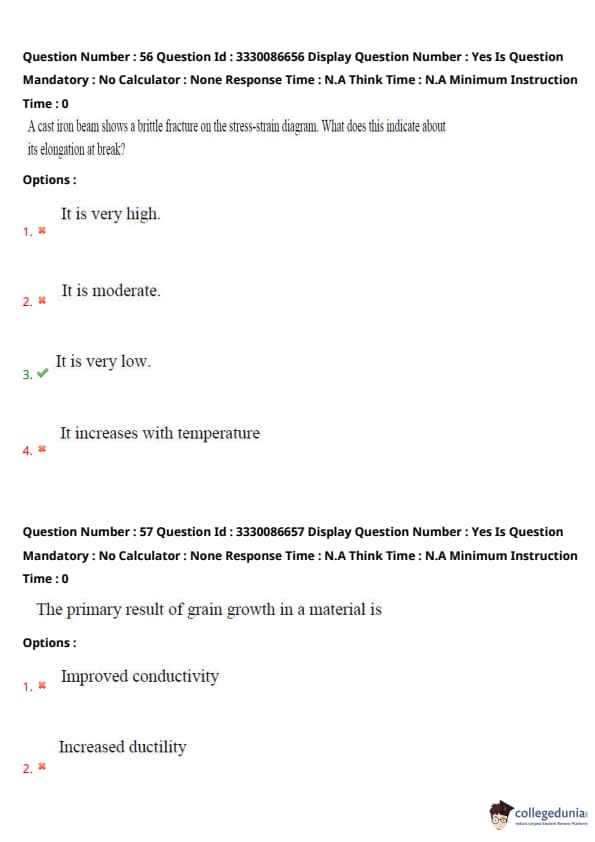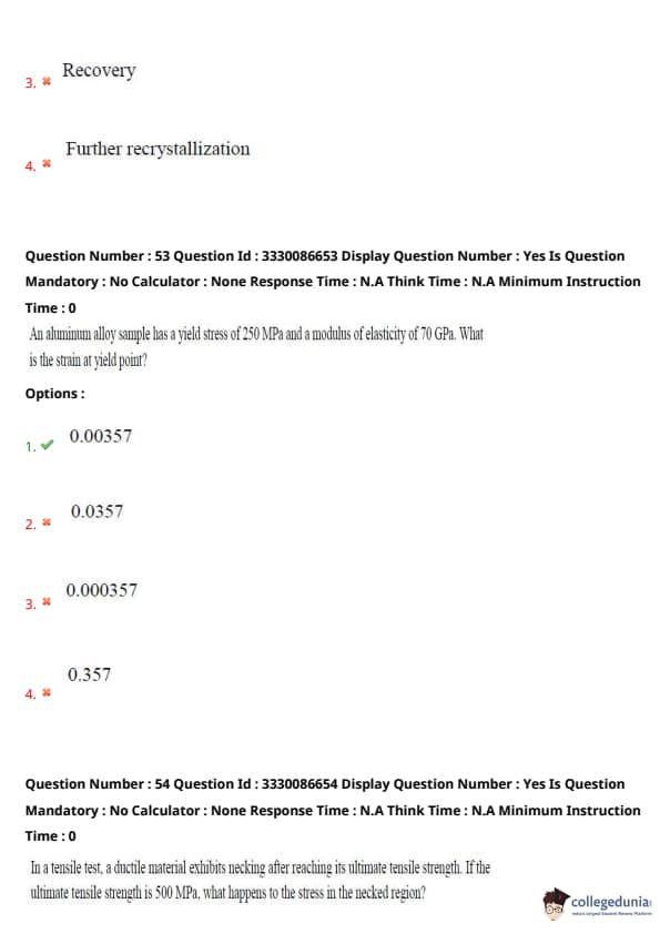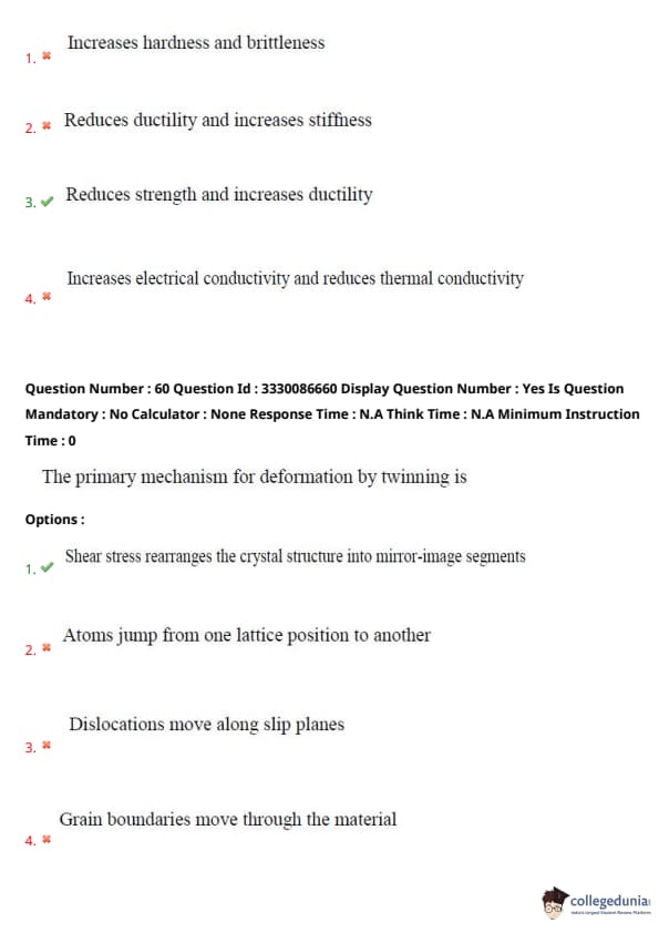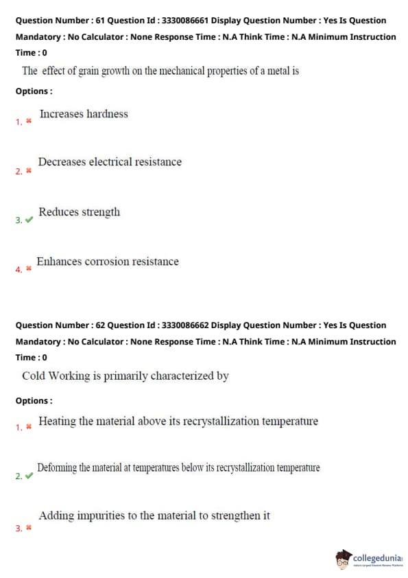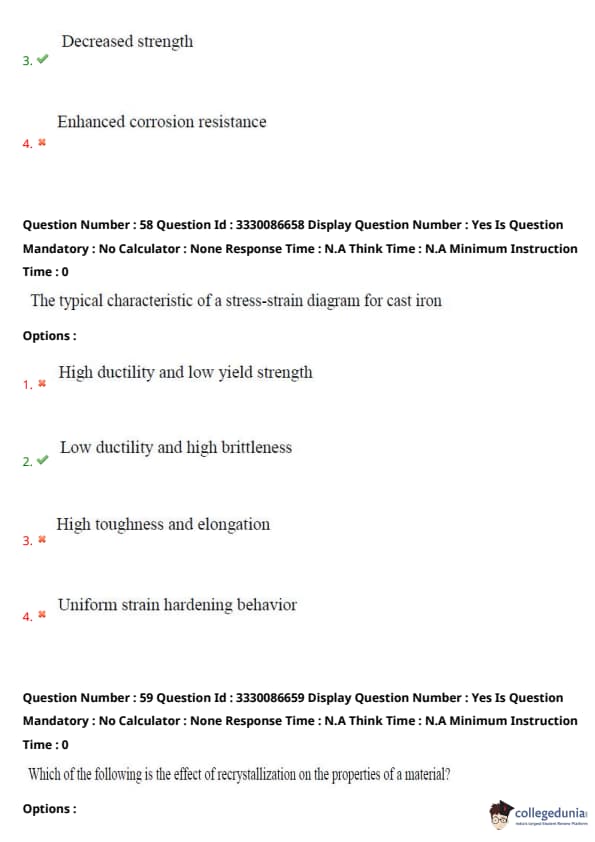 Question 59: Which of the following is the effect of recrystallization on the properties of a material?