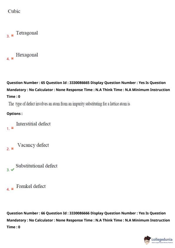 Question 65: The type of defect involves an atom from an impurity substituting for a lattice atom is