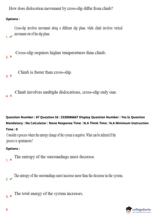Question 66: How does dislocation movement by cross-slip differ from climb?