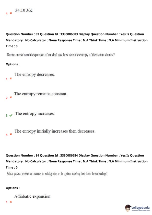 Question 83: During an isothermal expansion of an ideal gas, how does the entropy of the system change?