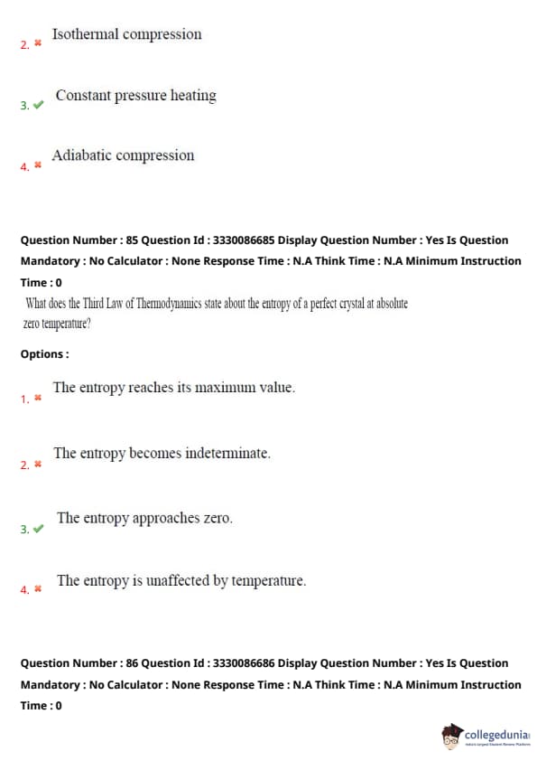 Question 85: What does the Third Law of Thermodynamics state about the entropy of a perfect crystal at absolute zero temperature?